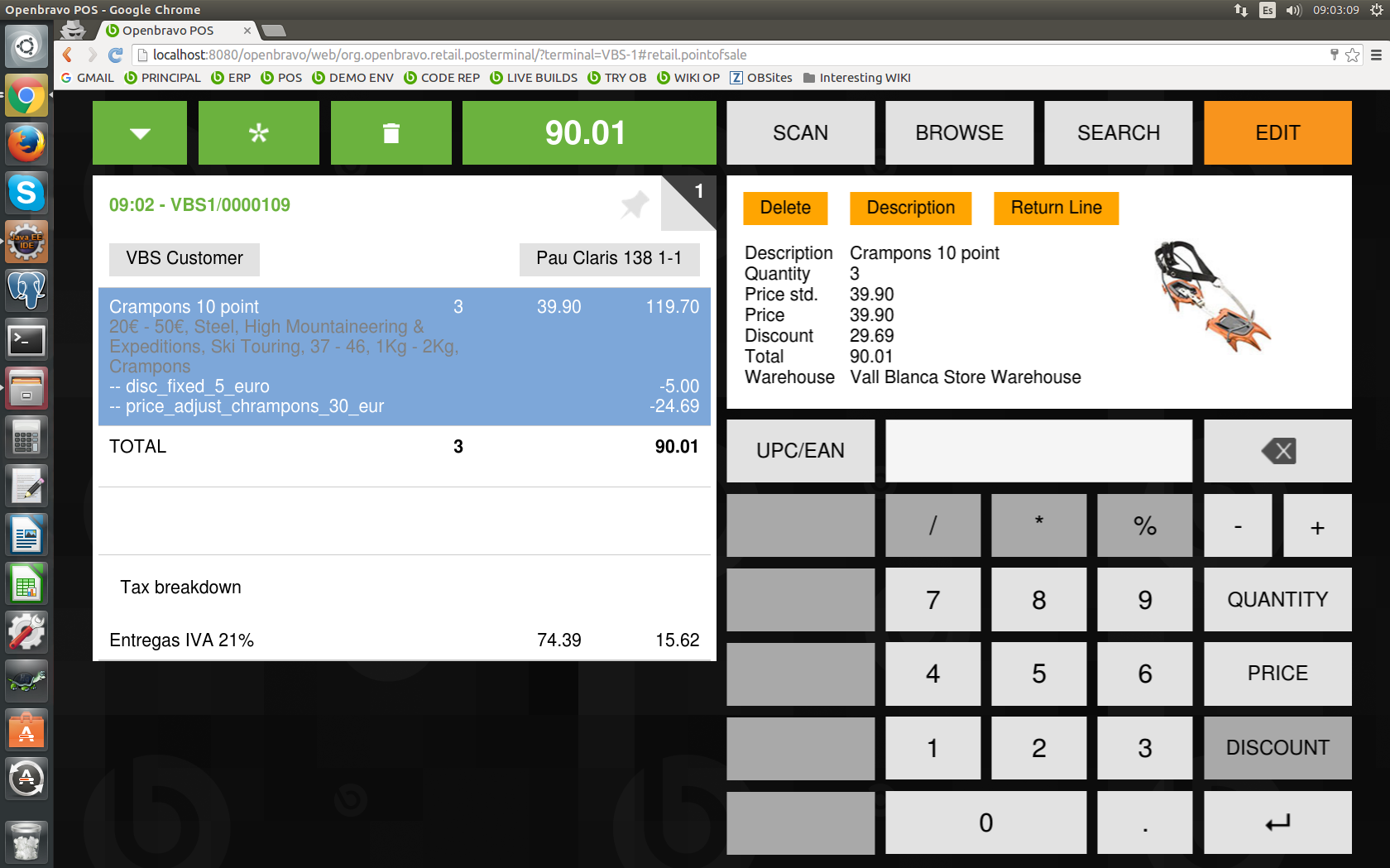 1.3 - Add three units of that product and check a discount price_adjust_chrampons_30_eur is applied.
