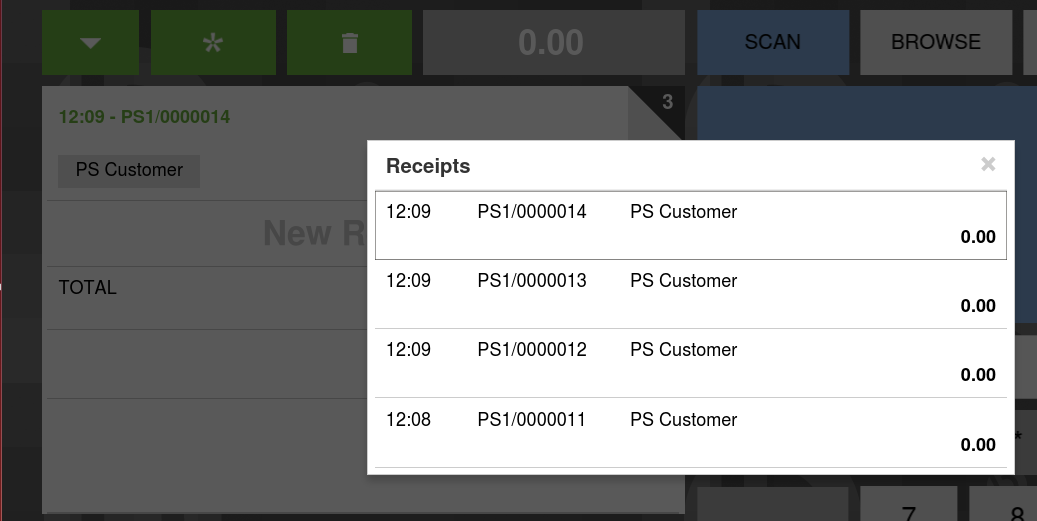 | Steps To Reproduce | Log in the Web POS by using "vallblanca" or "posets" user, depending on the context. 1. Add one or more receipts by clicking the asterisk button in the main screen. 2. Click on the black numbered tab on the receipt main description area to show the popup with the receipts list 3. Try selecting a receipt. | |||||||||||
