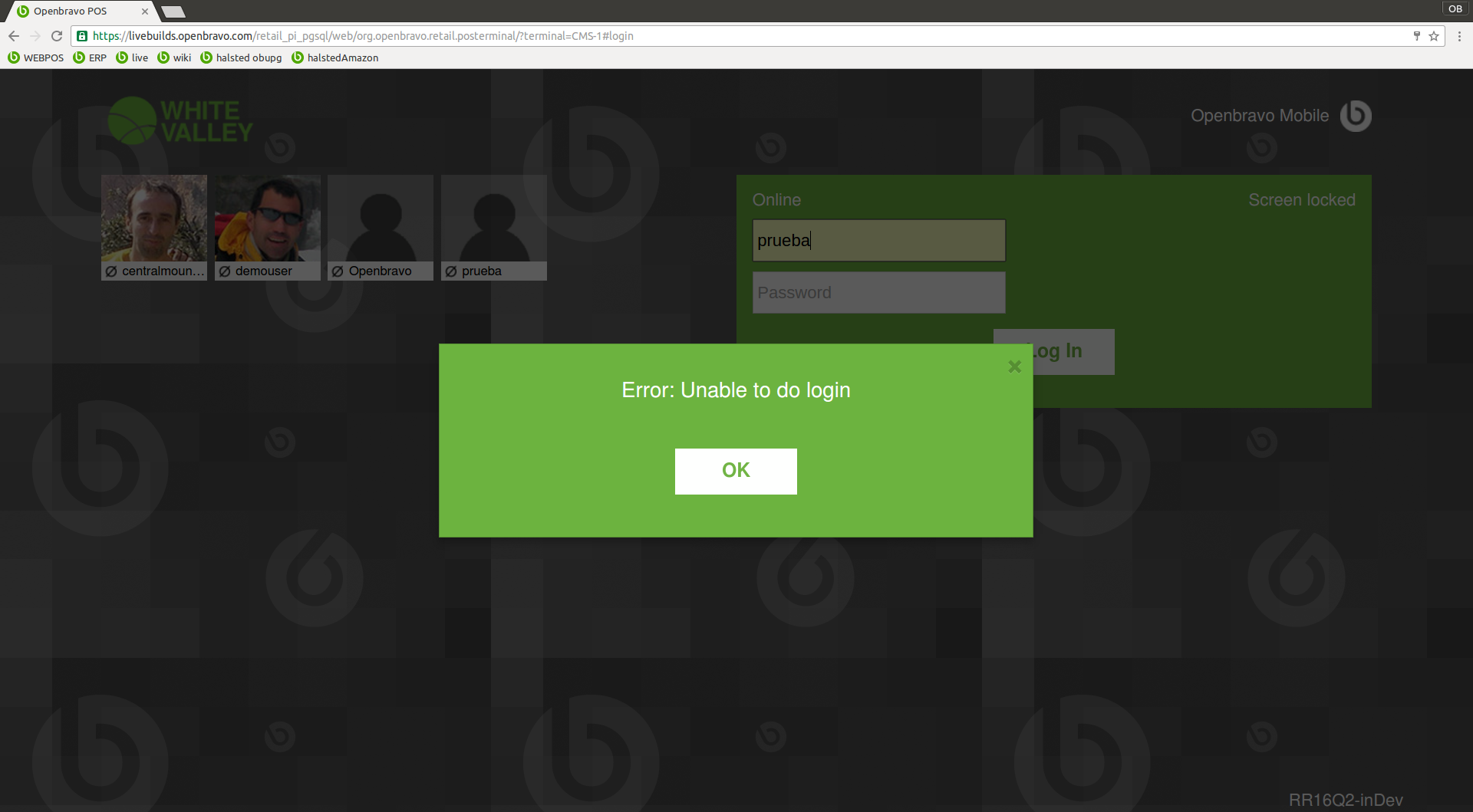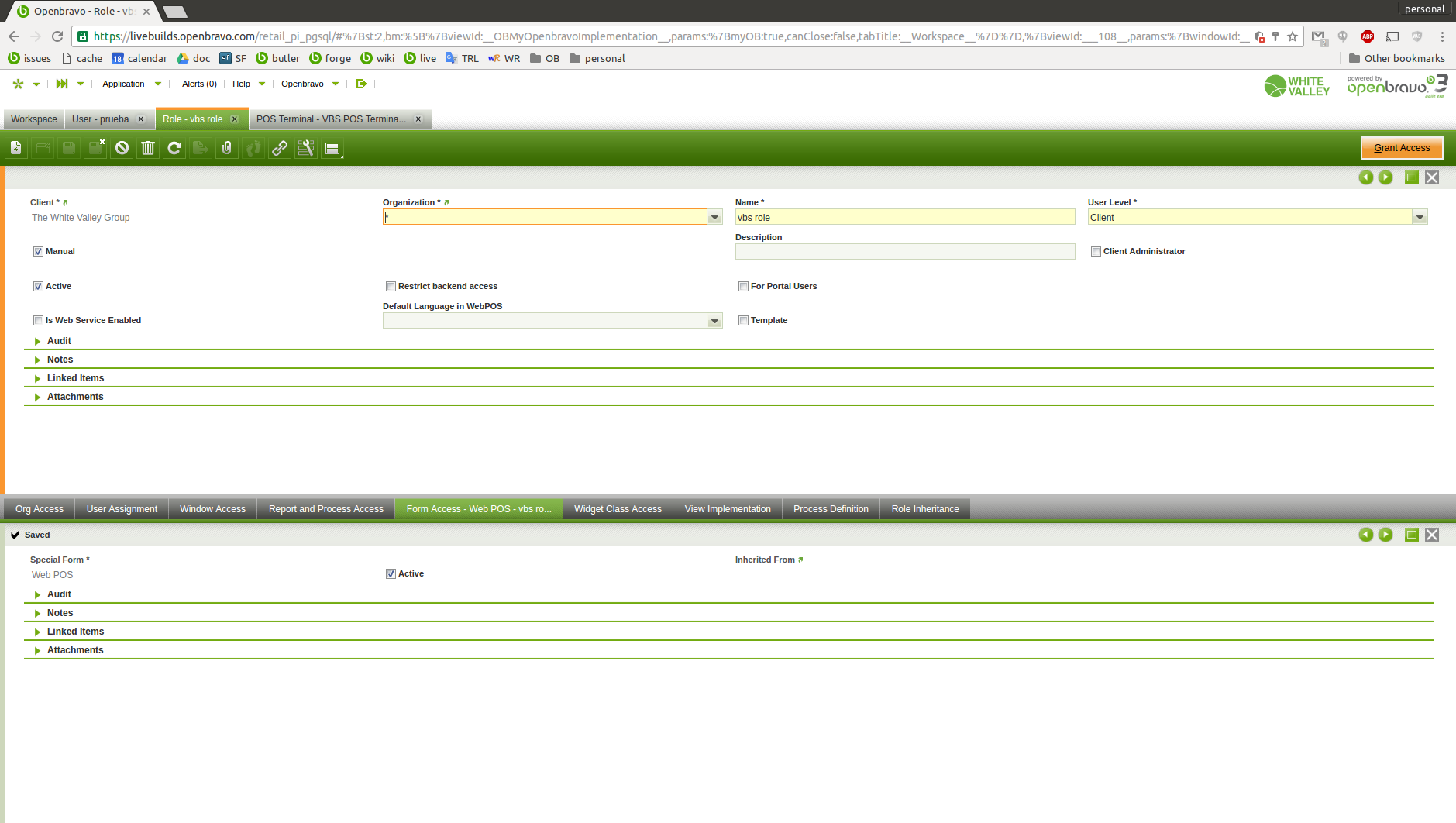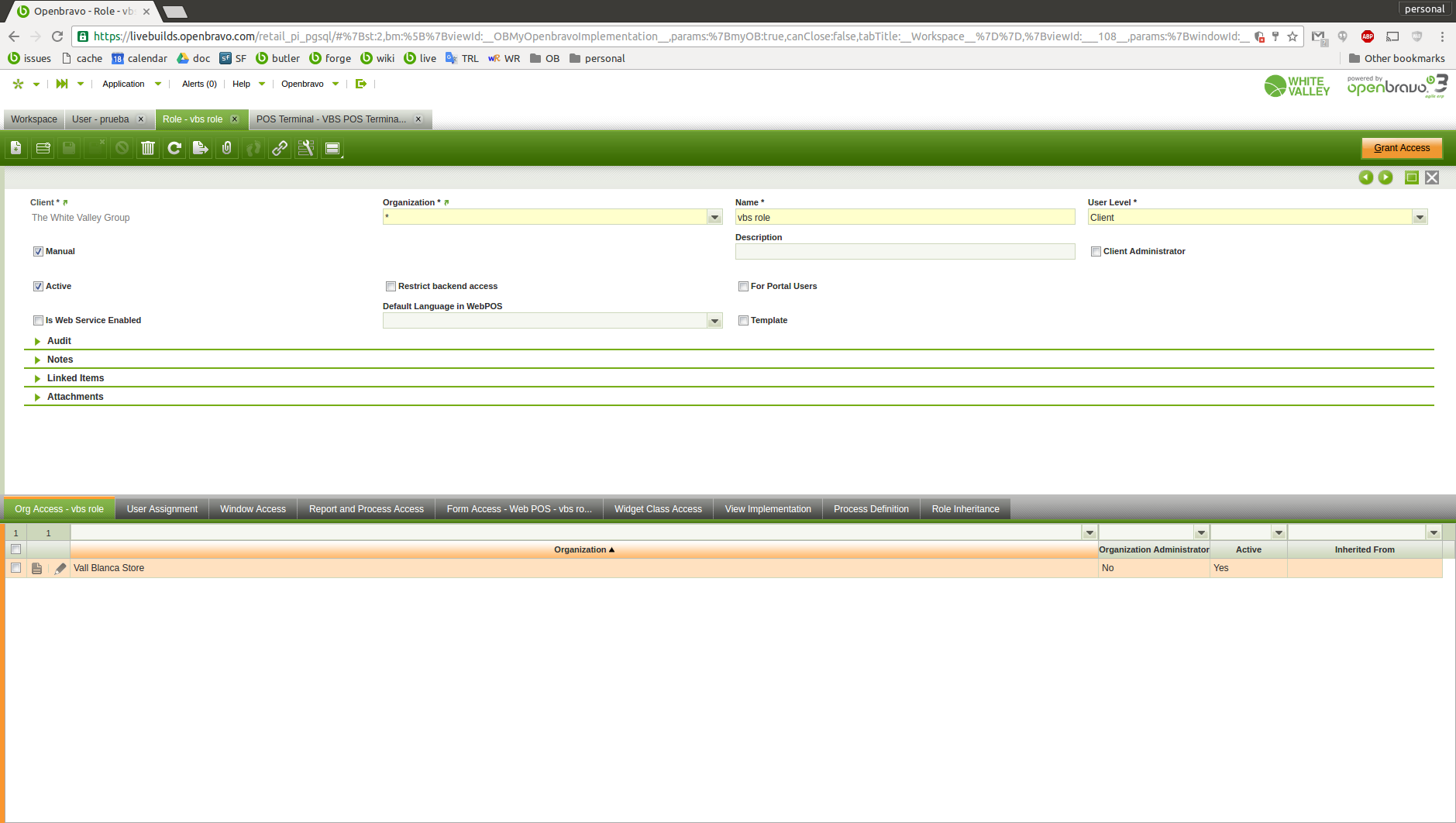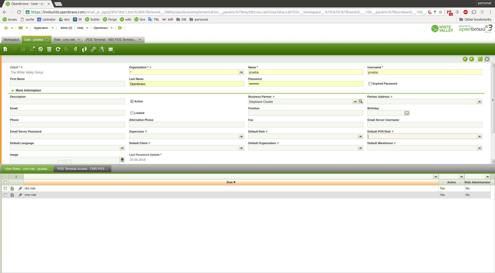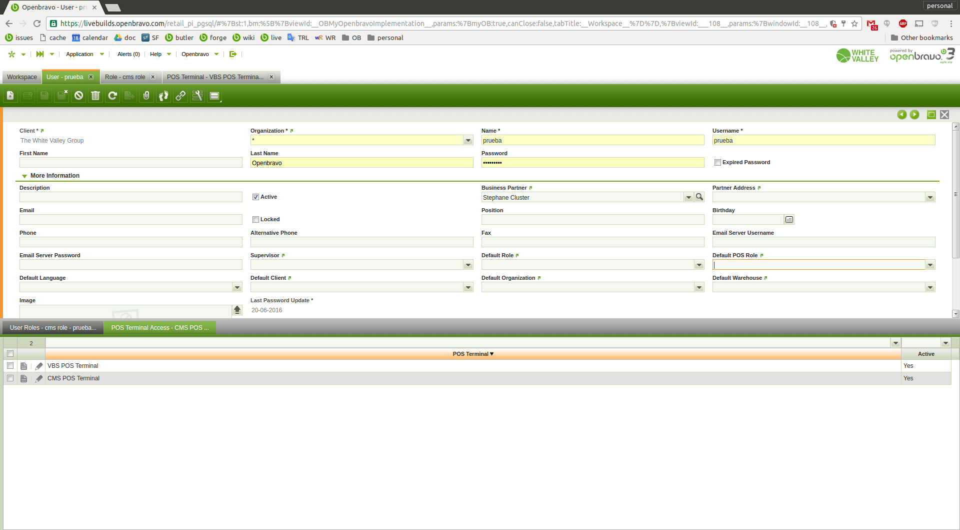 | Steps To Reproduce | in VBS: . new role: "vbs role" manual: Yes . org access: "Vall Blanca Store" . Form access: Web POS (see attachments role-OrgAccess.png / role-FormAccess.png) . new role: "cms role" manual: Yes . org access: "Central Mountains Store" . Form access: Web POS . new user: username: prueba . user roles: vbs role cms role (see attachment user-Roles.png) . pos terminal access: VBS POS Terminal CMS POS Terminal (see attachment user-POSAccess.png) in WEB POS . do login with user "prueba" in VBS-1 terminal -> it works . do login with user "prueba" in CMS-1 termina -> error is returned (see attachment error.png) | |||||||