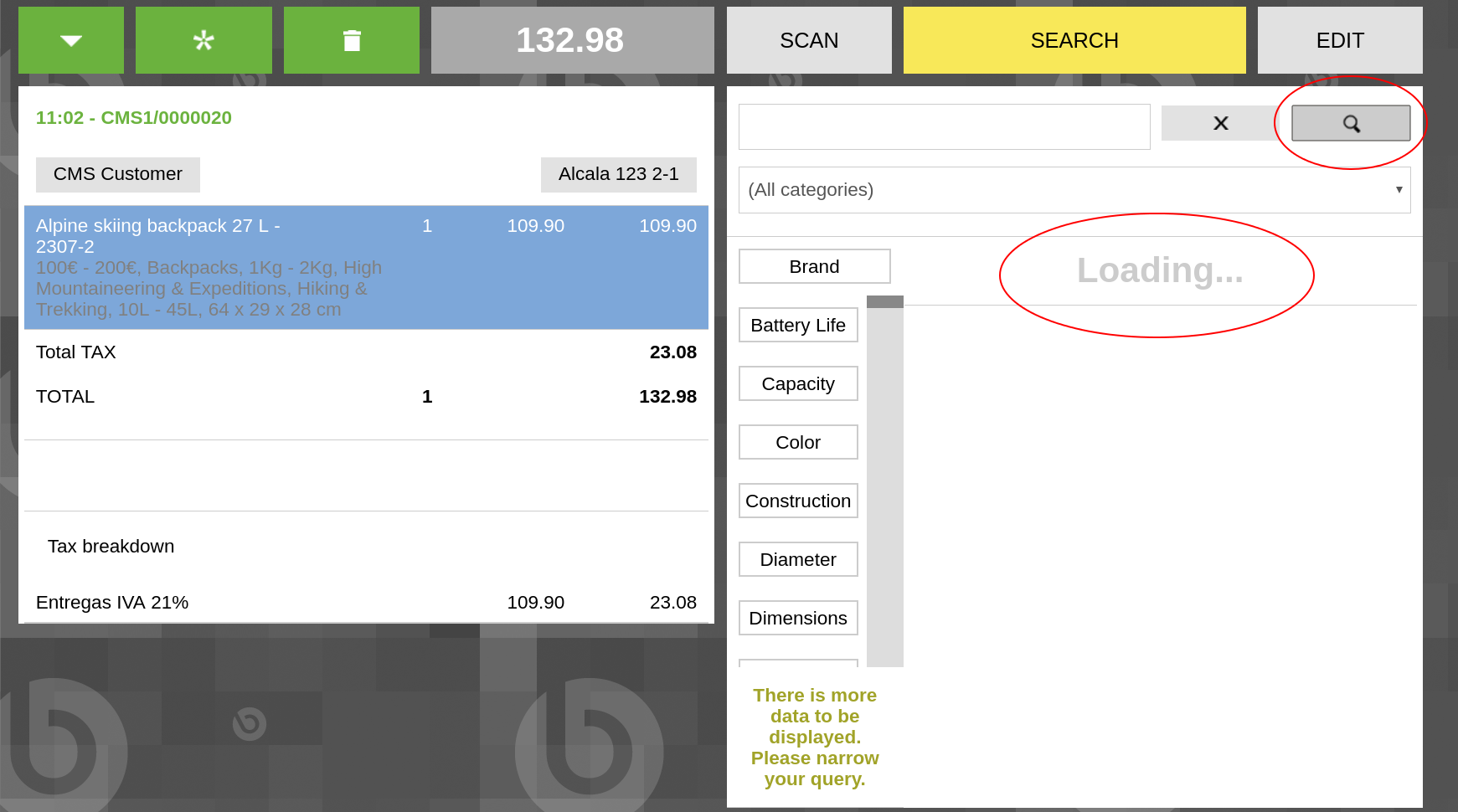 | Description | It is possible to click several times in search button queuing the queries. This induces POS to be Loading and unusable during a long period of time. Search button should be disabled until the previous query has finished. This behaviour is uglier in HighVol contexts. | |||||||||||