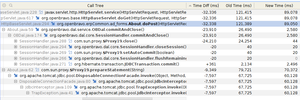 | Description | Default Openbravo pool is adding StatementFinalizer interceptor [1]. From its documentation: "Keeps track of statements associated with a connection and invokes close upon Connection.close() Useful for applications that dont close the associated statements after being done with a connection." So it can be useful for those statements that are not closed when their connection is returned to the pool. But causes some performance degradation: 1. All statements in a connection are kept in a list till the connection is closed, in practice all statements in a transaction are kept in that list. For long lived transactions (ie. long background processes), the number of statements can be significant causing a big heap usage. 2. For each statement in the transaction it adds some overhead in time: 2.1. When it is created it is added to a list to keep track of it 2.3. When connection is returned to the pool, this list is iterated to close the statements again (even if they were already closed). --- [1] https://tomcat.apache.org/tomcat-7.0-doc/api/org/apache/tomcat/jdbc/pool/interceptor/StatementFinalizer.html [^] | |||||||