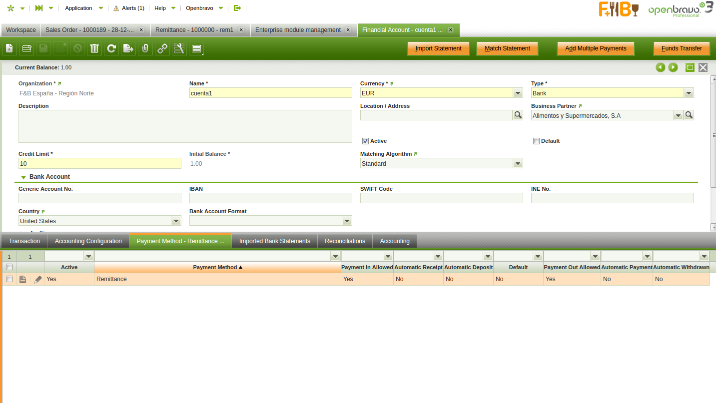 | Steps To Reproduce | ---> Having an activated environment with "Remittances Infrastructure" module installed 0) First of all, as F&B International Group Admin role, open [Enterprise Module Management] window and apply Reference Data of Remittances module. 1) Open [Financial Account] window and set the default values, and add "Remittance" as the Payment Method, as seen in the attached image. 2) Switch to [Remittance] window and let the default values and use the financial account saved before. 3) Press button "Select Orders or Invoices" and select the payments 4) Then hide "Payment" column and filter some invoice. 5) Create this view and set as "Default", as seen in the attached video 6) Close [Remittance] window and reopen it. The exception is shown | |||||||||||
