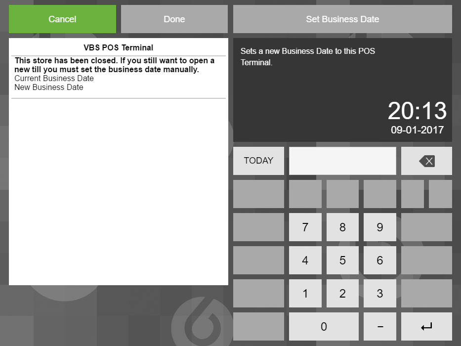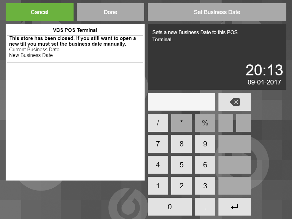 DescriptionIn the windows where dates can be introduced using the keypad, the date separator defined in the instance should be displayed within the keypad button.
