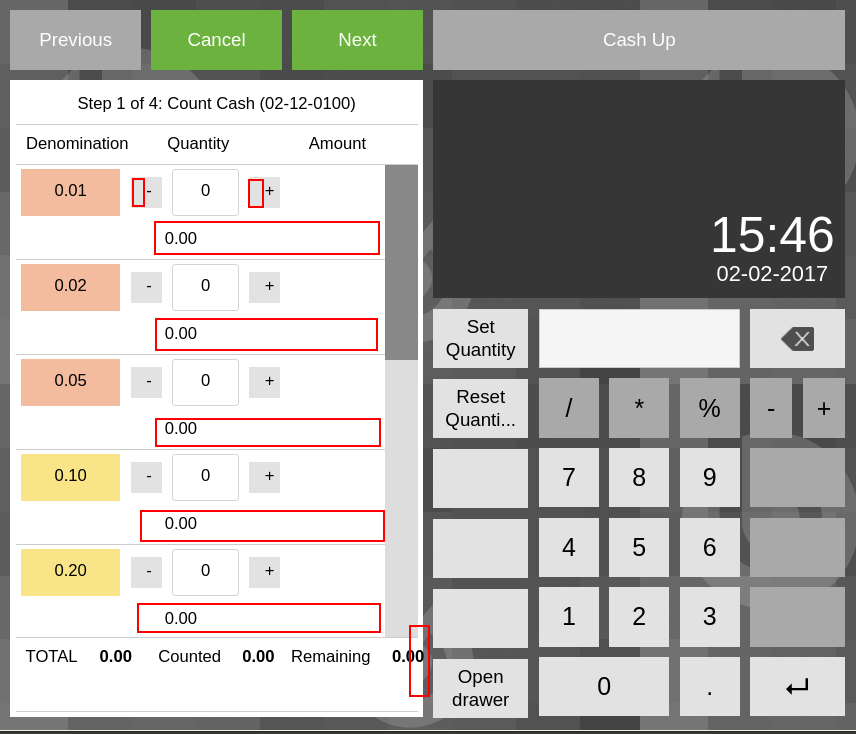 | defect | [Retail Modules] Cash up | minor | always | 2017-02-02 16:21 | 2017-02-02 16:22 | |||||||
