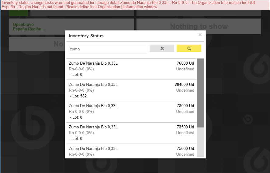 Steps To Reproduce1. In a system with the AWO modules installed but no Organization set up, go to mobile WH app and open the inventory status search.
