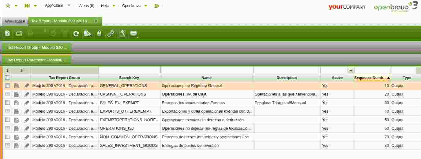 En Openbravo, se creará un nuevo parámetro del 303 de tipo "output" denominado "Operaciones en Régimen General". Este nuevo parámetro se asociará con los mismos impuestos a los que el parámetro del 390 de mismo nombre, está asociado.