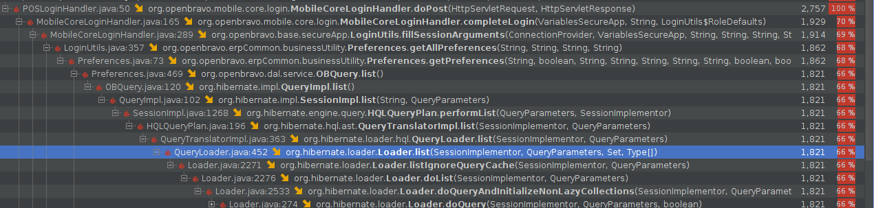 2.2 login WebPOS with 'Demo user' on its default 'Vallblanca' organization, which cannot see 'Central Mountains Store' -> login request take up to 4s, in this case, time is spent in loading DAL objects in memory | |||||||