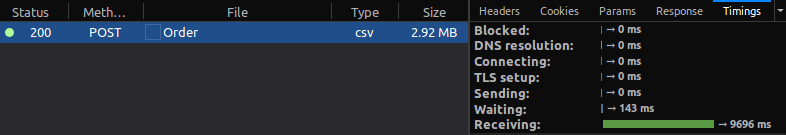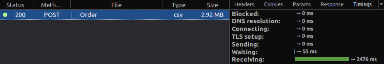 DescriptionOn an environment with a high volume of Sales Orders. When trying to export the grid as csv it takes too much time to generate the csv.