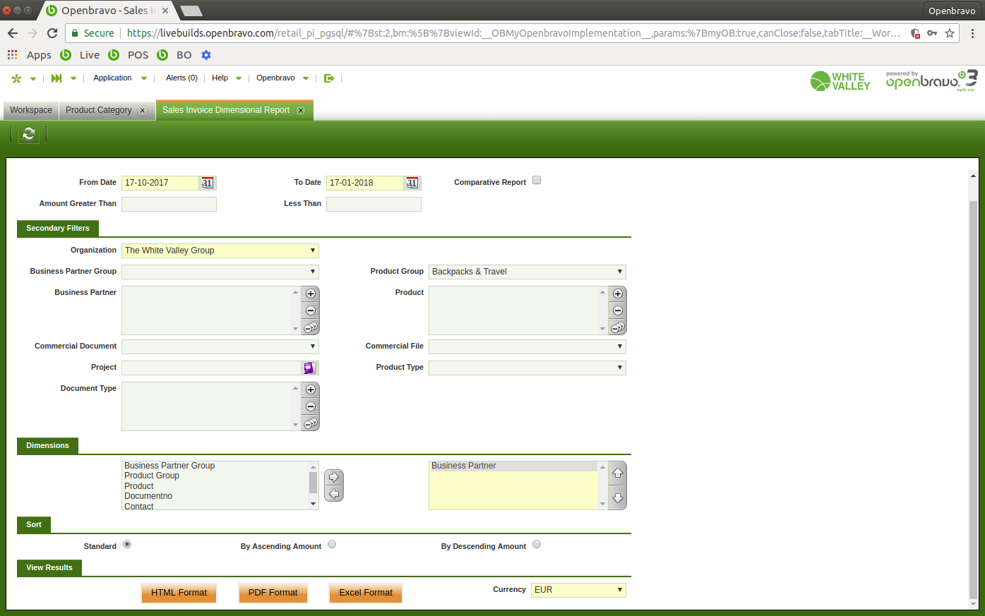 DescriptionSales Invoice Dimensional Report of a Product Category checked as summary level does not show data.