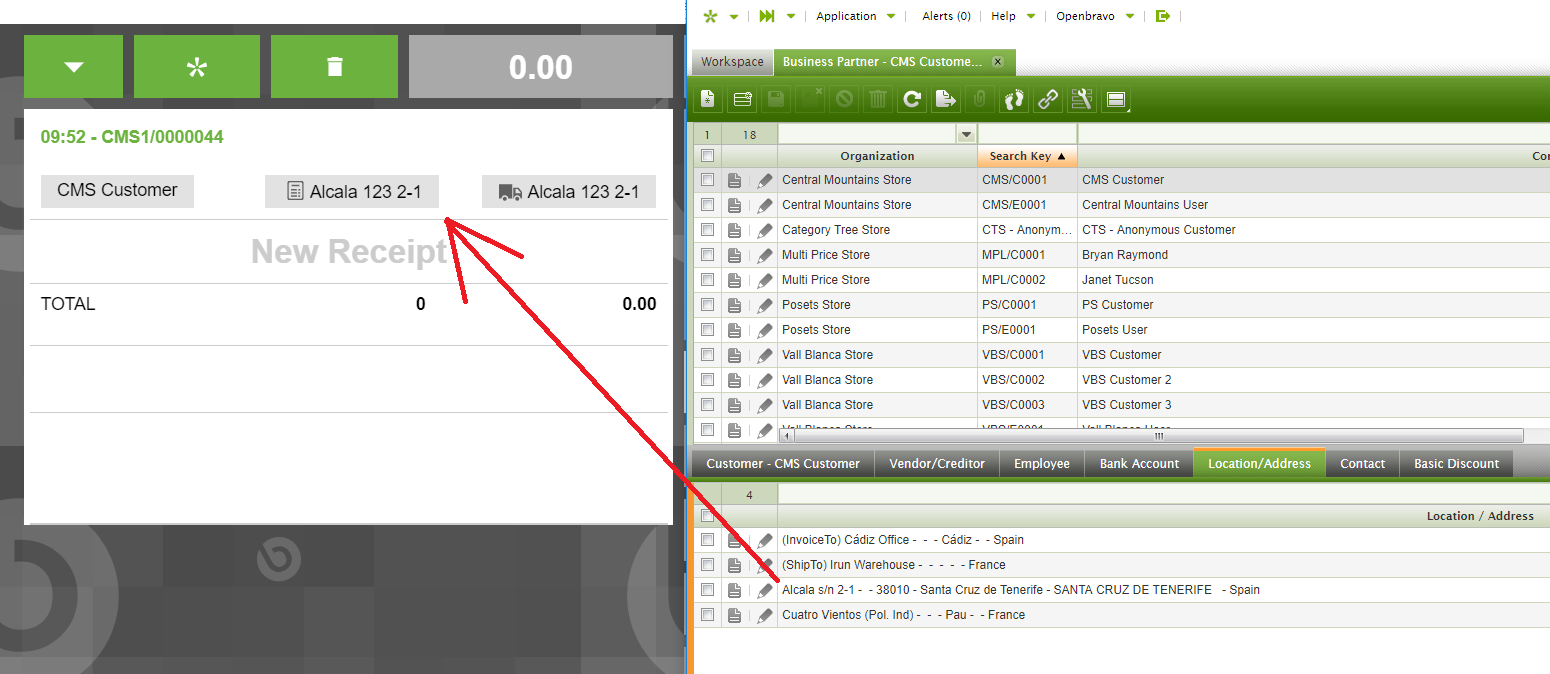 1. In the Main Window, see the default customer address.