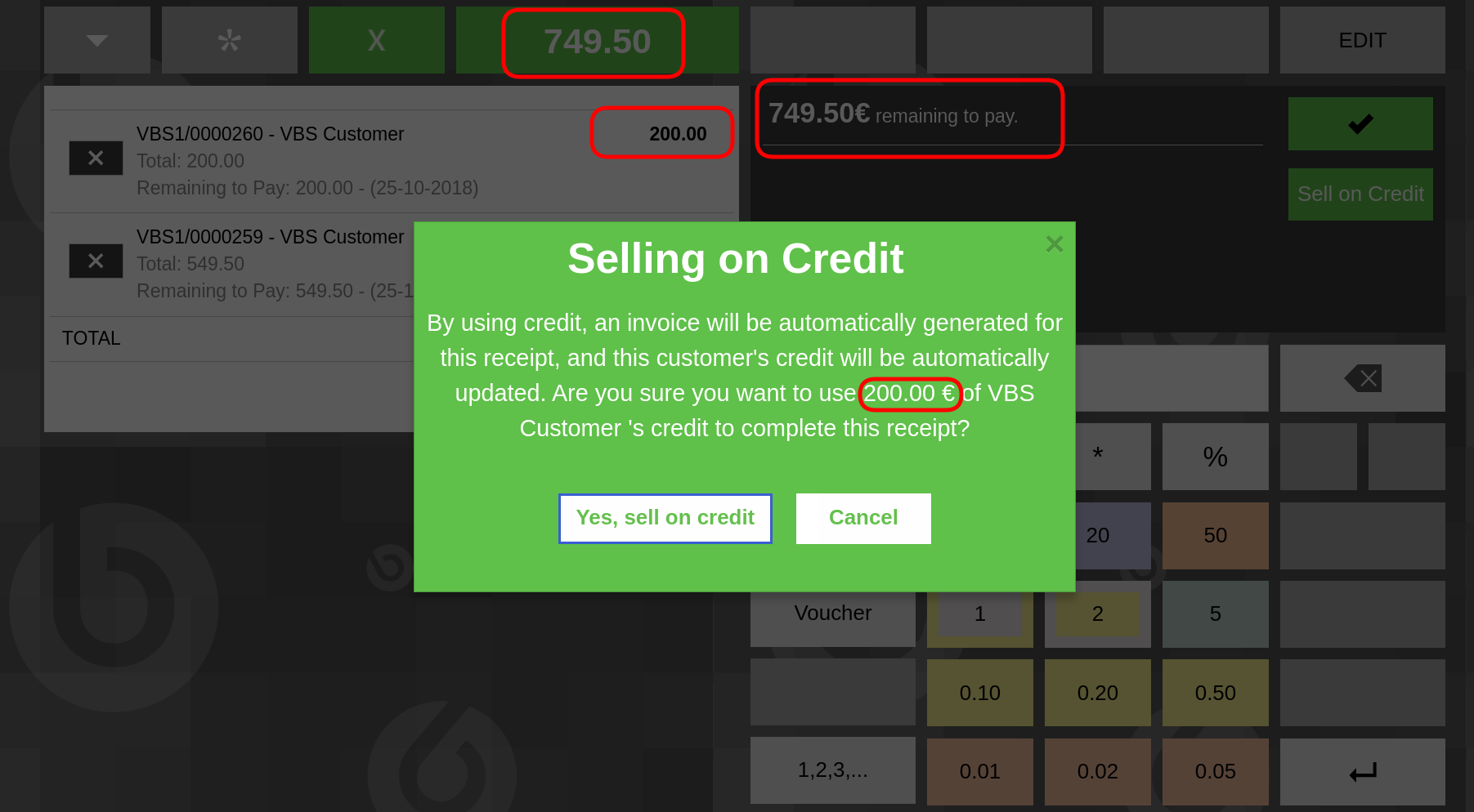 7-Click "Sell on Credit" button. Realise this must not be posible. Moreover, if you pay with credit now or even before clicking Tick button, the Sell on Credit feature will only pay 1 receipt, not all of them which, of course, breaks Pay Open Tickets flow.