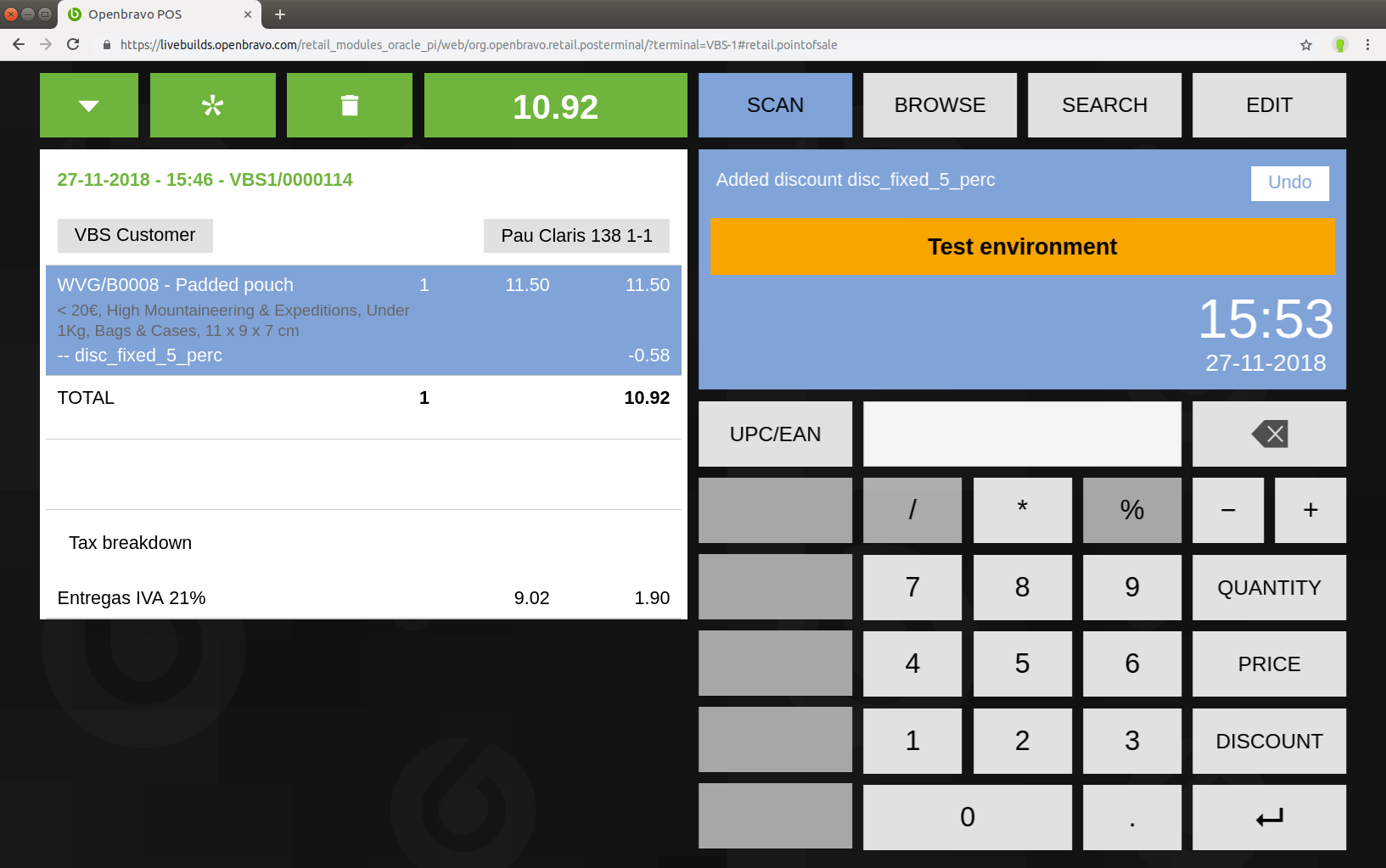 The Price Adjustment discount is applied (with 10% -> 1.15€)