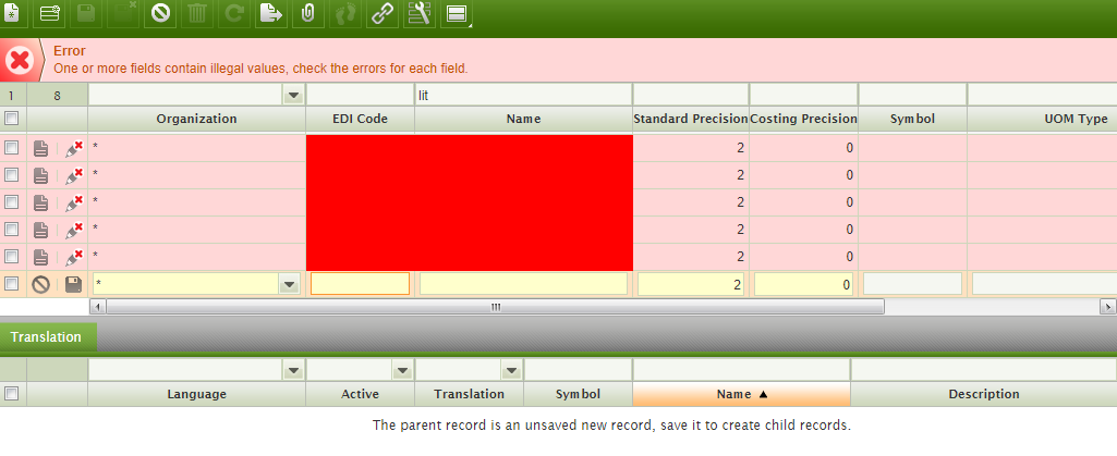 | Steps To Reproduce | 1. As System Admin, open "Unit of measure" window 2. Filter the grid to get just one record 3. Using the pencil icon, edit the record 4. While editing a field, press Down key or use Tab key to move out of the record. As expected, a new record is shown. 5. Press Down or Tab key again, note another blank record is created. See attached screenshot. | |||||||