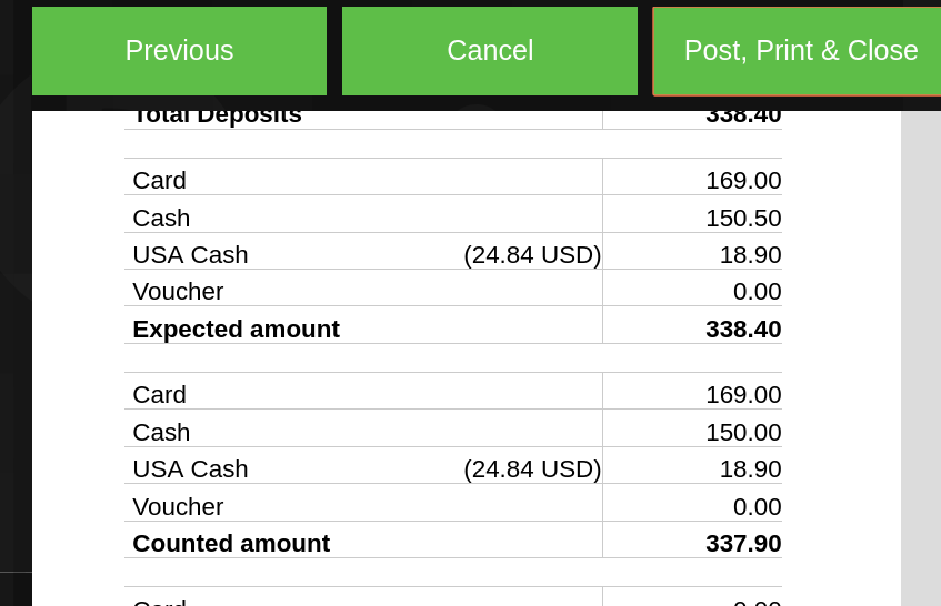 | Description | The counted amount is wrong when the cashup report is printed in the backend. | |||||||