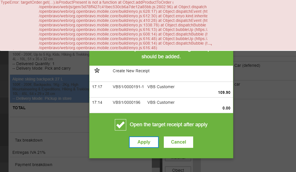 Proposed SolutionThe root cause of the issue is the unfiltered list in the "non editable receipt" pop up. Only those tickets allowing to be modified should be shown.