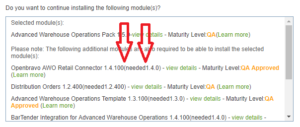 | Steps To Reproduce | This will happen with a pack that has dependencies that do not match exactly the module that are about to be installed. The issue has been reproduced installing AWO package, but might require a different module/pack depending on the release it is being tested. | |||||||||||
