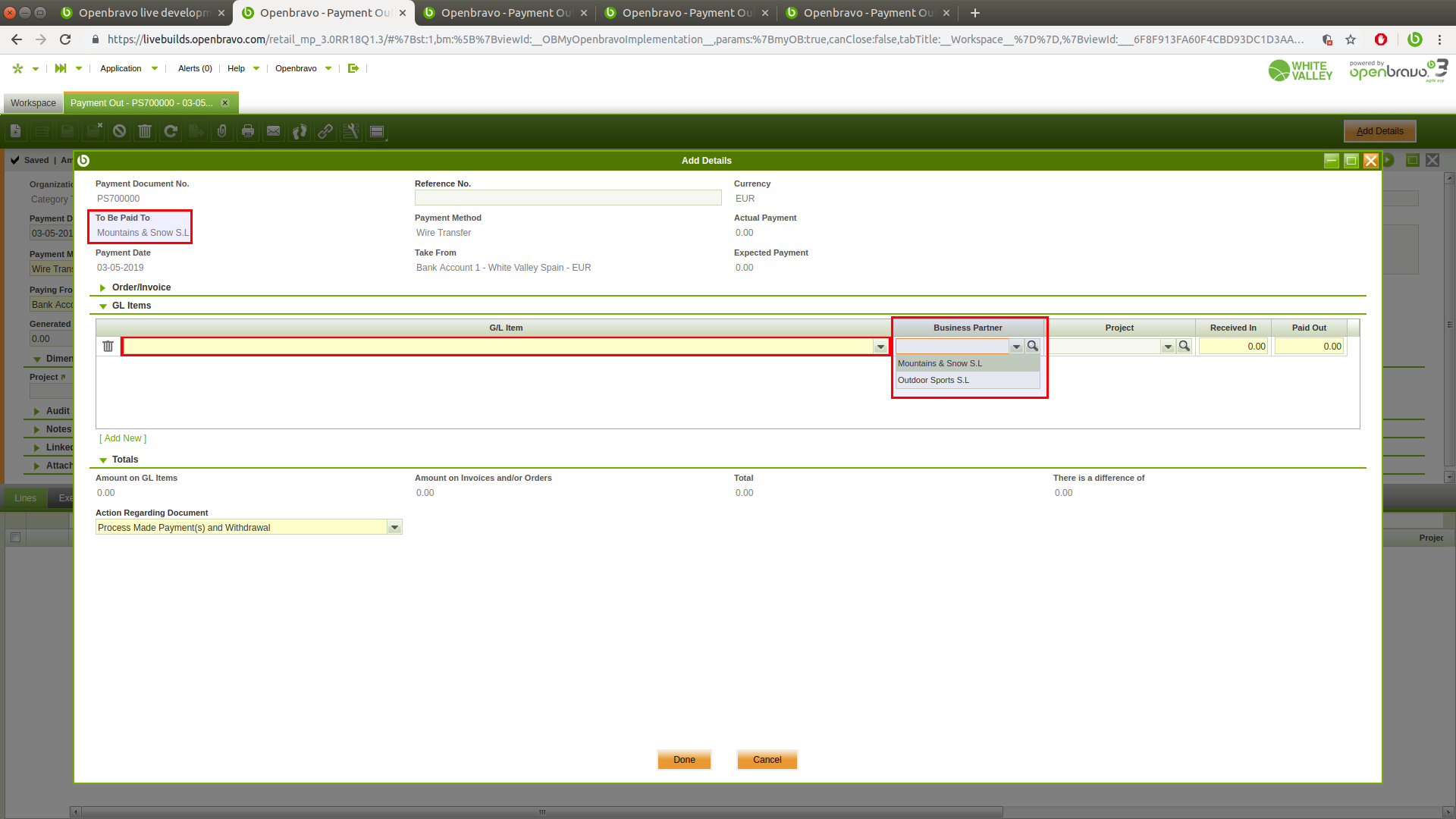 2019-05-06 17:48 anderaranguren Summary In Payment Out window, Add Details process, the Business Partner is not showing the records that it should => In Payment Out window, Add Details process, the Business Partner is showing customers when it should show vendors