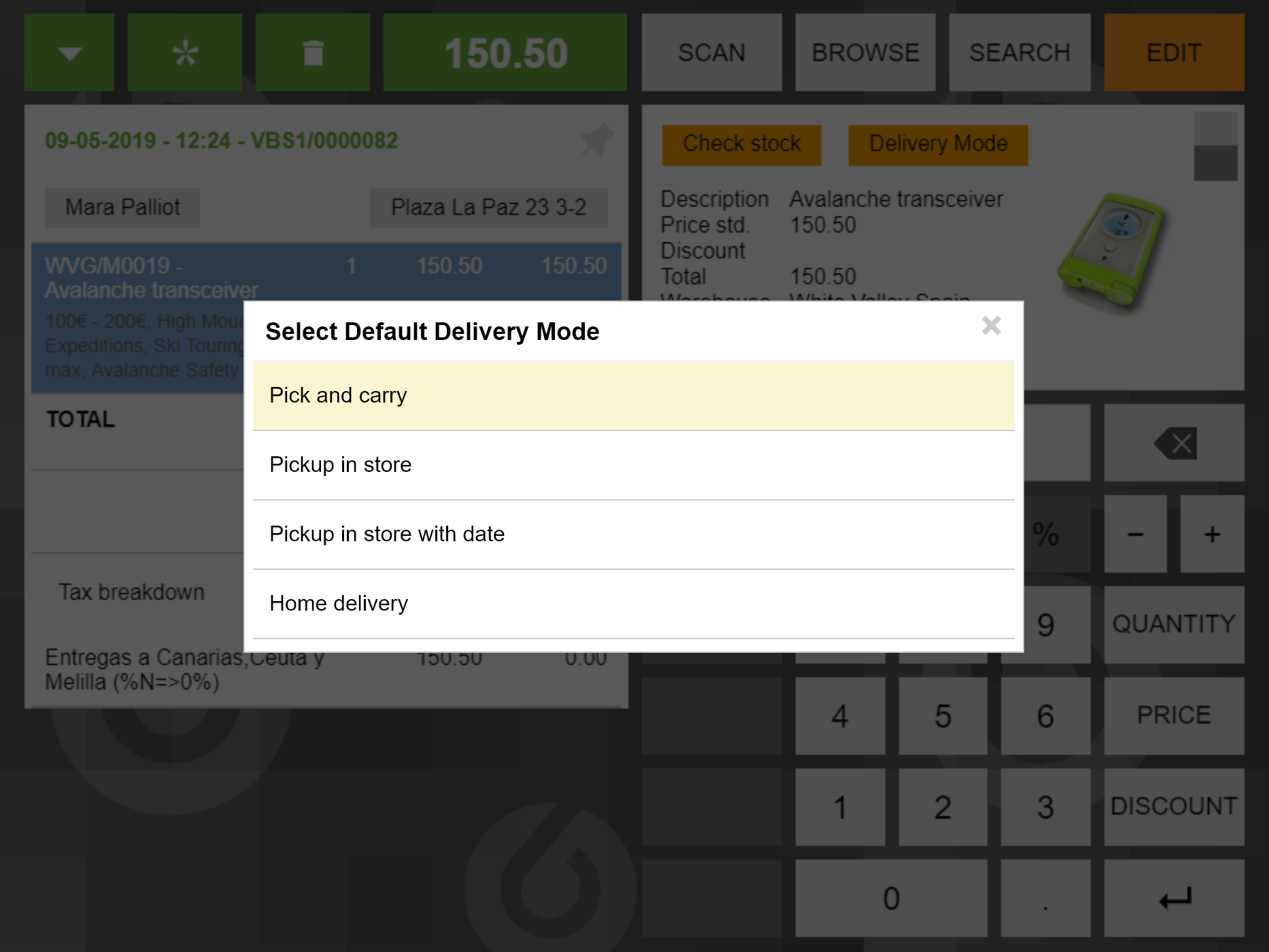 DescriptionAt this moment, there are two ways of selectying a "Delivery Mode". By receipt (default value) or by line.