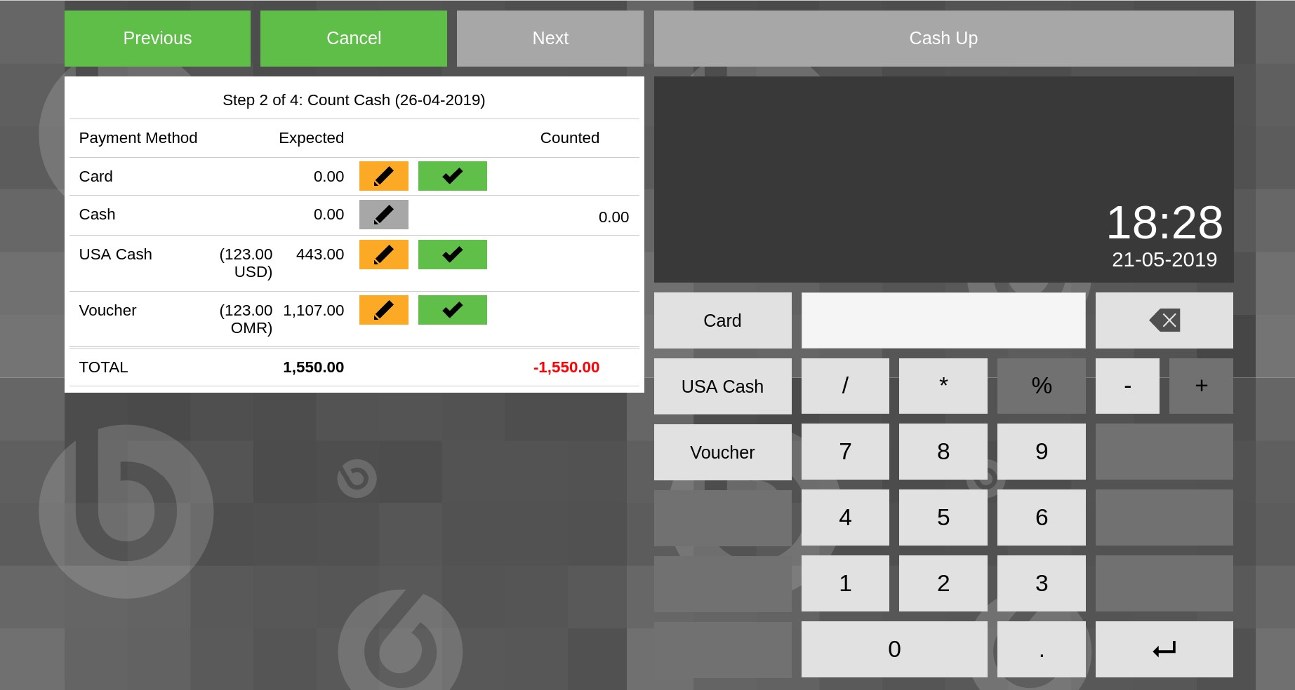 DescriptionIn Count Cash step of Cash Up amounts in foreign currencies are rounded to the POS currency precision