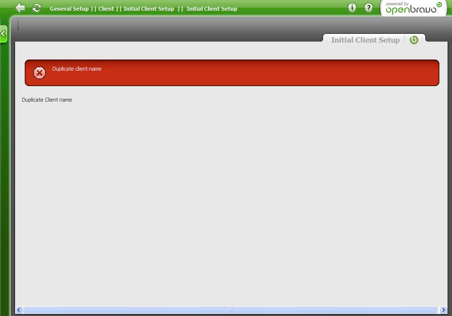 | Summary | 0004102: Improve Initial Client Setup duplicate error | ||||||||||