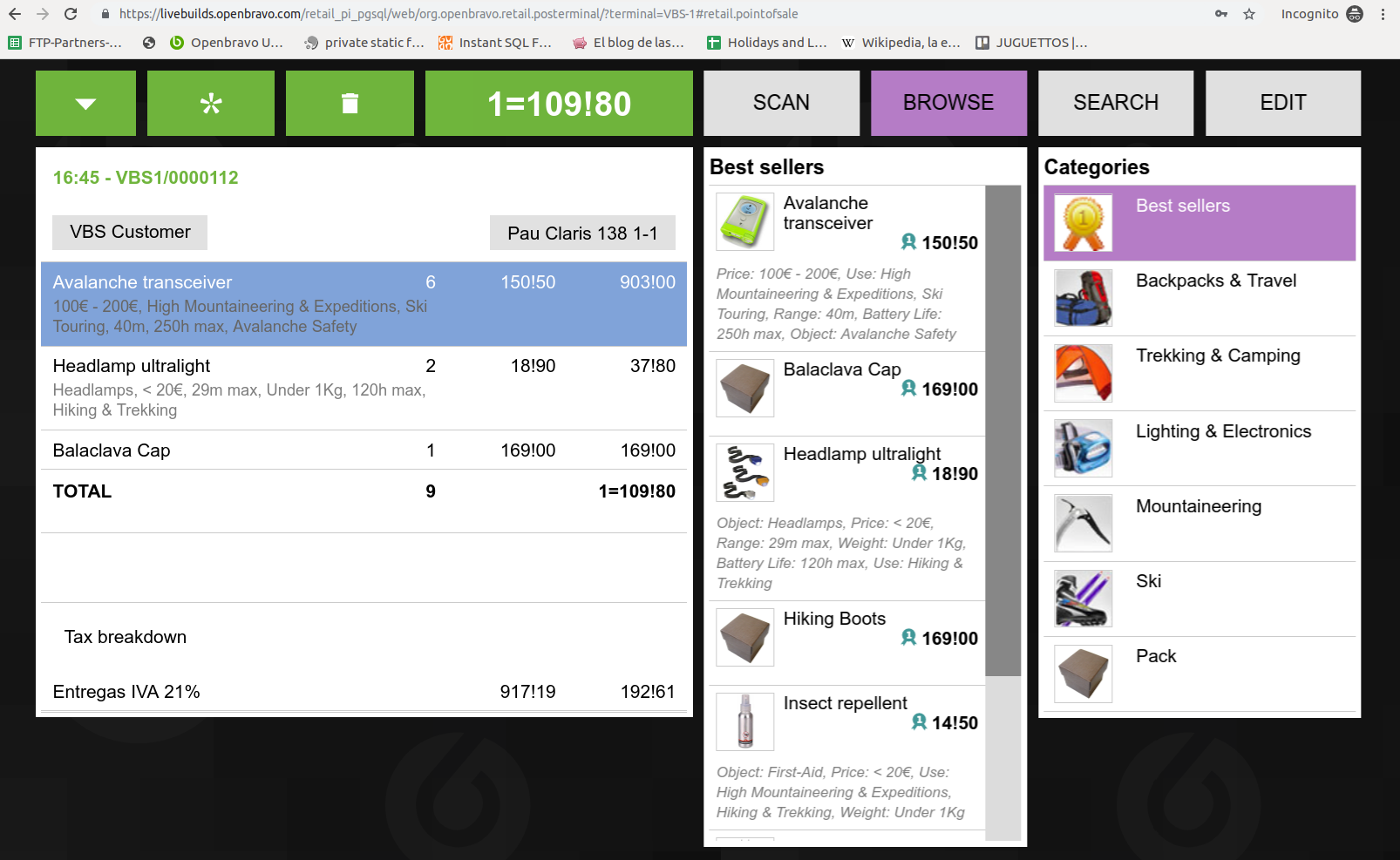 Open WEB POS (VBS-1 terminal) and add some products. You can check the separators shown are incorrect