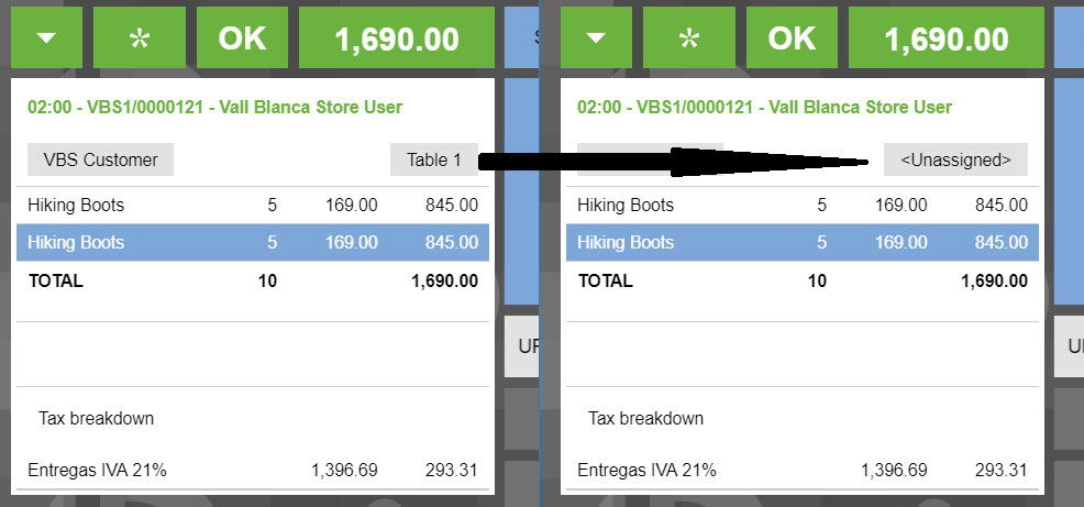 | Steps To Reproduce | 1. Create a new receipt for Table 1 2. Check the table field correctly says "Table 1" 3. Add a product to the table 4. Click OK button 5. Check Table 1 has an assigned ticket 6. Click on Table 1 to open the ticket 7. Check that table field now says "Unassigned" 8. Click the table field, notice Table 1 is selected. 9. Apply the change 10. Notice the table field says "Table 1" 11. Repeat above steps to double check on opening it still says "Unassigned" | |||||||||||