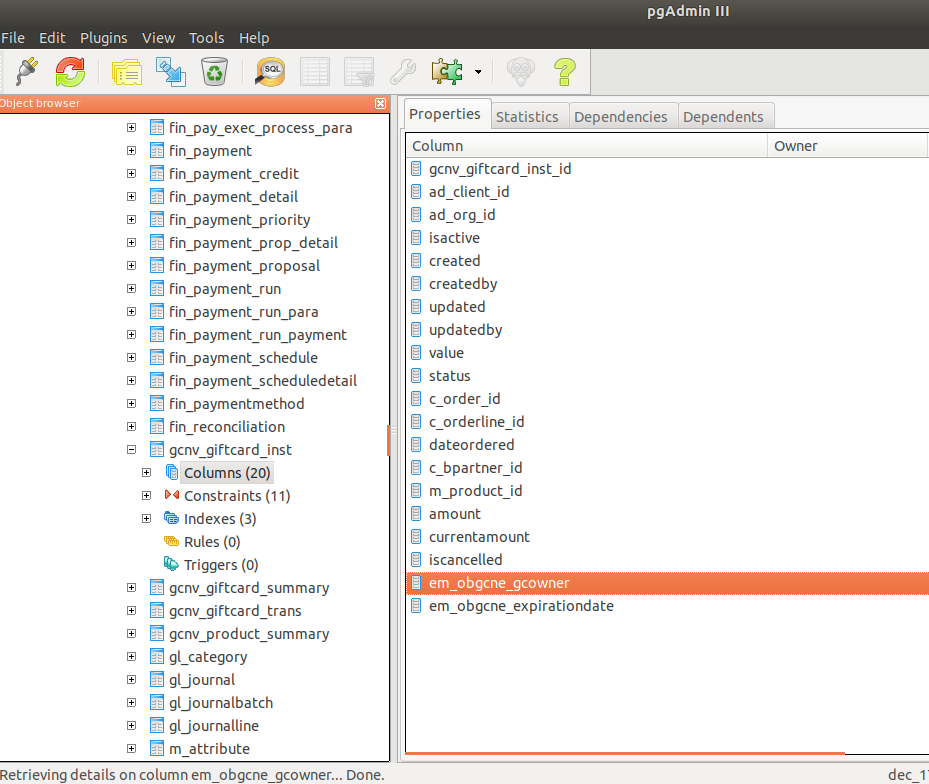 I have not been able to reproduce it as I have been having problems with 17q1 instances locally, but I report it because I understand that to fix this issue one should only update the references to that columns as done with other modules that have merged into others, as the naming is following now other prefix rules (without em_) http://wiki.openbravo.com/wiki/How_to_add_Columns_to_a_Table [^] |