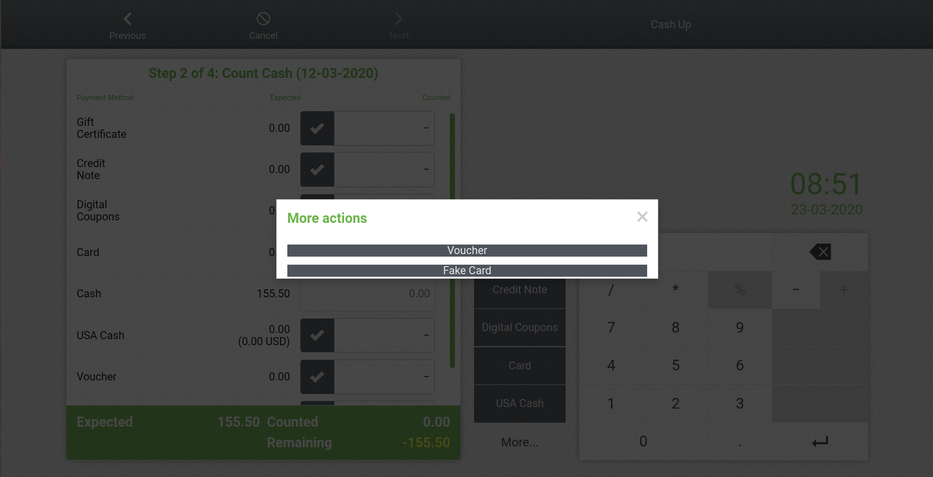 | Summary | 0043537: "More" payment methods buttons in CashUp are wrong | |||||||||||
