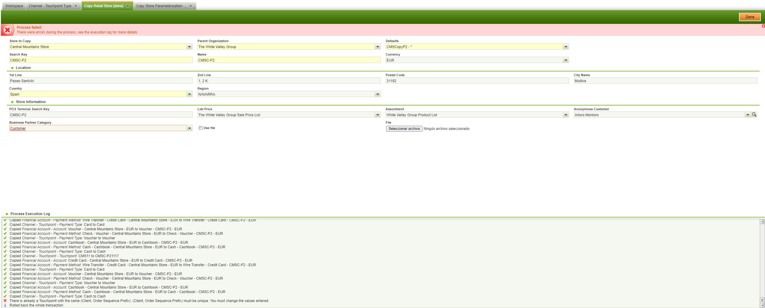 3-Click Done to start the Copy Retail Store process. DEFECT: The process will be canceled with error.