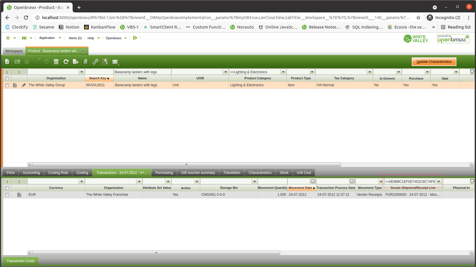 | Steps To Reproduce | 0- Activate your instance with a professional instance in order to enable the "saved view" feature 1- Login using the "White Valley Group Admin" role 2- Go to the Product window 3- In the header filter by the following fields: - Name: Basecamp lantern with legs - Product Category: Lighting & Electronics 4- Switch to the Transactions sub tab and filter by Goods Shipment/Receipt Line field using the filter drop down 5- Save the view, setting it as default 6- Close the window 7- Open the Product window again, note that the saved view is applied but in the filter of the Goods Shipment/Receipt Line field the uuid of the document is displayed instead of its identifier (see attached image) | |||||||