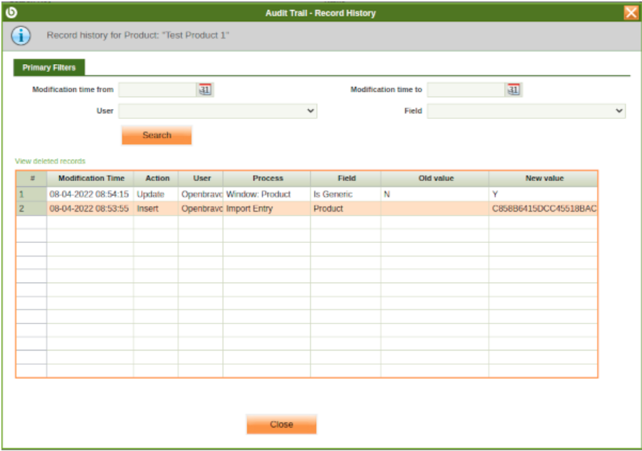 | Summary | 0049271: Improve Audit Trail information of the records imported with the Business API | ||||||||||