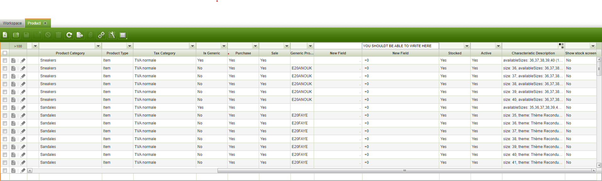 | Steps To Reproduce | Log in backoffice Go to window 'Product' Select "add summary field" Create a new column Close the window Open the window again Now, our newly created column allows us to write on its "filter" Video: | |||||||||||