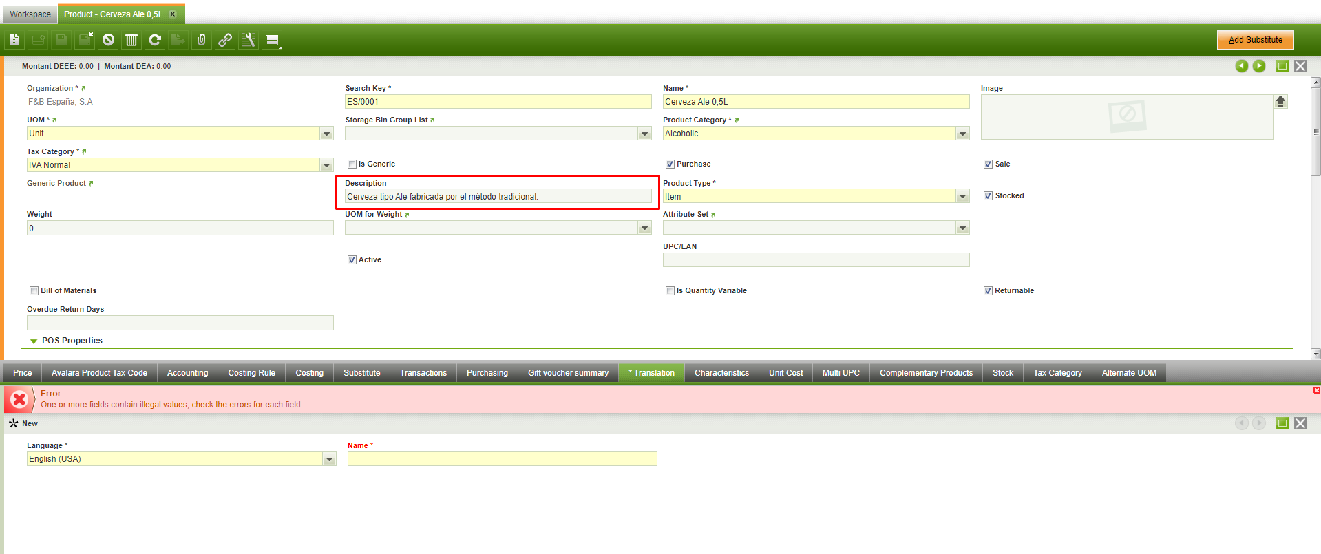 | Summary | 0049531: Product window --> Translation tab --> It allows to translate Name, but not Description | |||||||||||