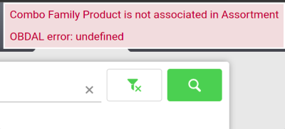| Description | When you search for a combo fix price discount and the products of it are not associated in assortment appears a wrong error message. Combo Family Product is not associated in Assortment OBDAL error:undefined as shown in the picture | |||||||||||