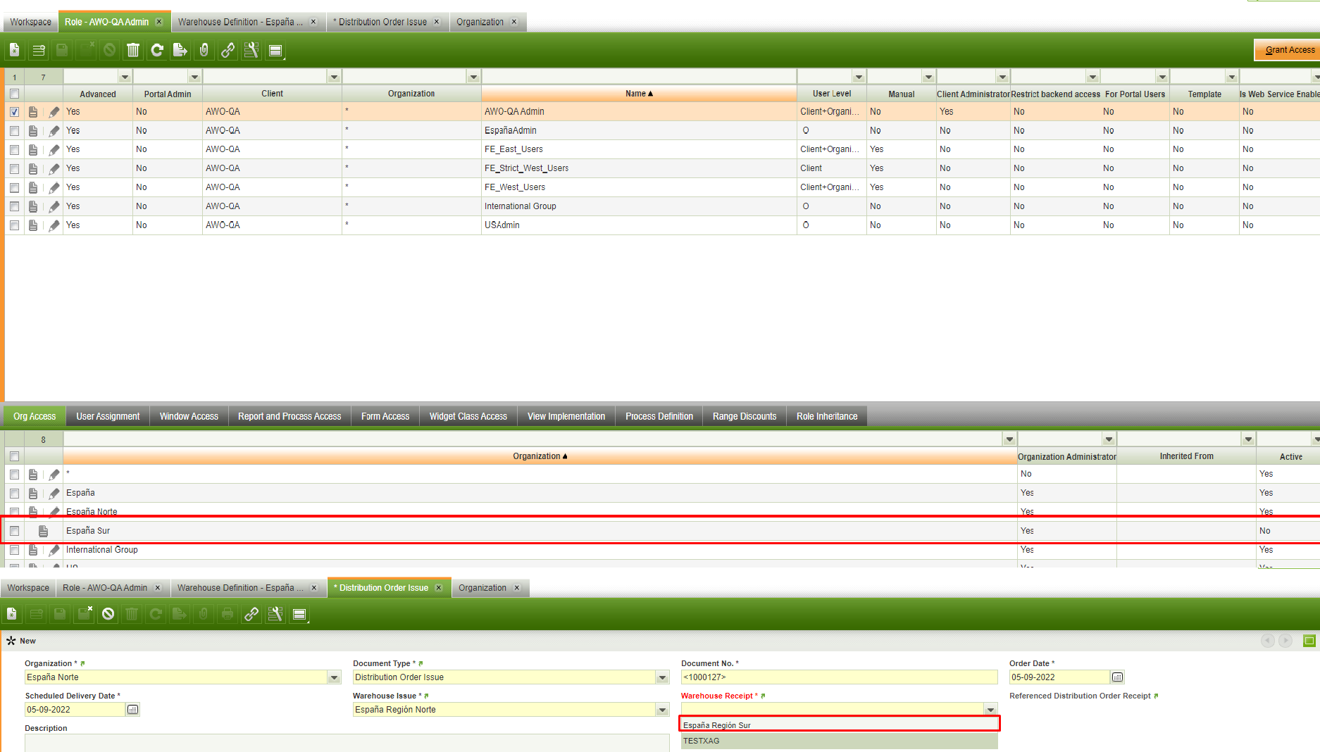 | Description | When using a role that doesnt have access to a specific organization, when we do a Distribution Order Issue, we can see its warehouses even though we have no access. Video: https://watch.screencastify.com/v/g8zjc1QNtl4ttc6bjYhO [^] | |||||||||||