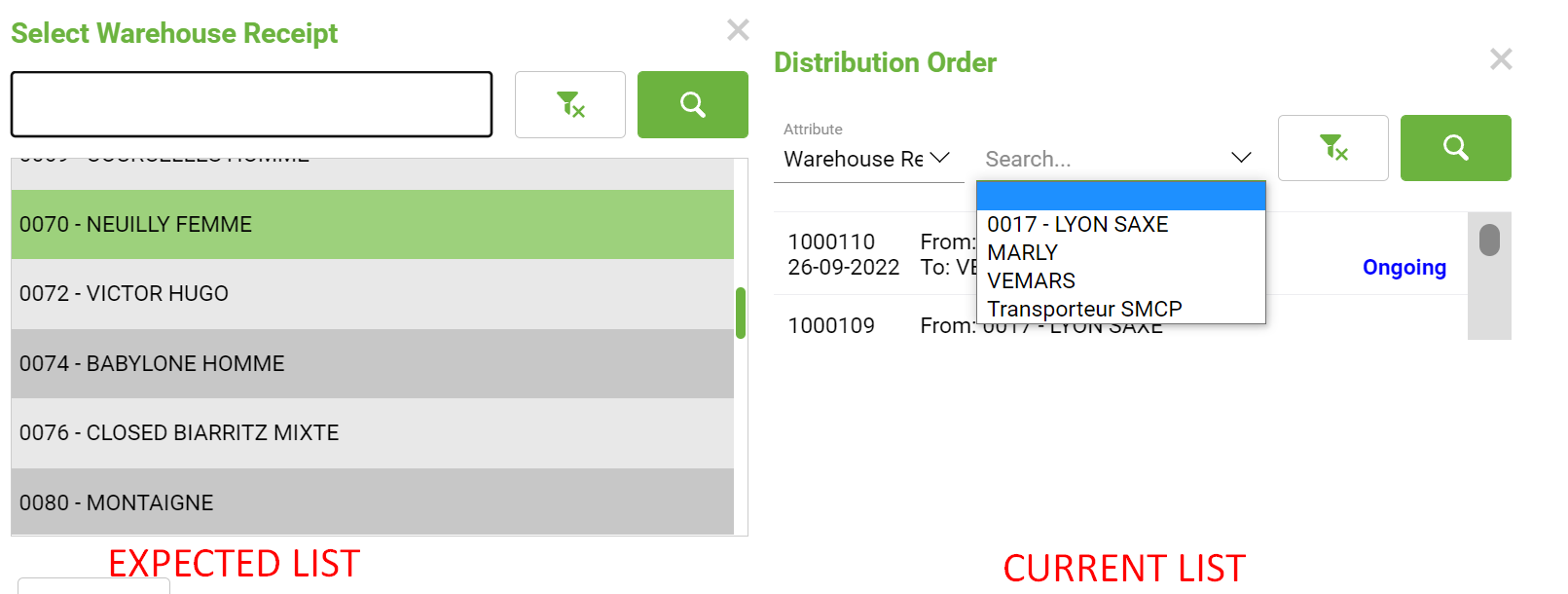 DescriptionThe list of recipient stores is almost empty when it should show all available warehouses