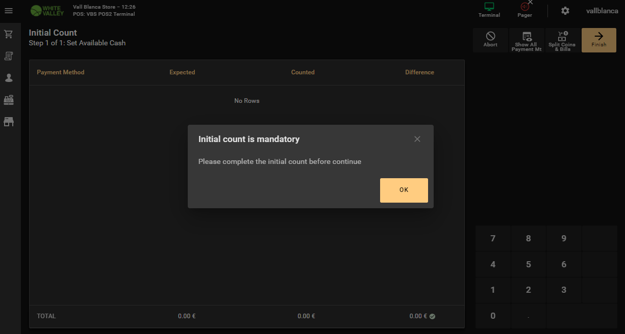 Steps To Reproduce1. After a successful login, the Initial Count page should be shown