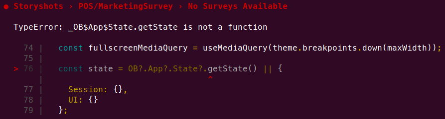 | Steps To Reproduce | 1) In an environment with org.openbravo.pos2 and org.openbravo.pos2.marketingsurvey modules installed run npm test modules/org.openbravo.core2/web-jspack/org.openbravo.core2/src/storybook/Storyshots.test.js Note that it fails with this error: "TypeError: _OB$App$State.getState is not a function". See attached | |||||||