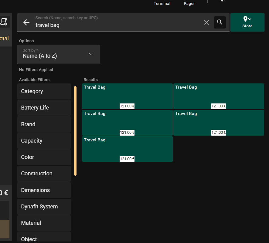 | Steps To Reproduce | 1. In Backoffice, create a Generic Product: Travel bag 2. Create a Characteristic Size with two Variants: M and S 3. Create a Characteristic Color with two Variants: Red and Blue 4. Run the Create Variants process 5. Go to POS1 and Search for the text "Travel bag" 6. Notice the four results, each one showing the values of its Variants (see attached screenshot) 7. Go to POS2 and Search for the text "Travel bag" 8. Notice the five(*) results, none of them showing Variants, making them indistinguishable (see attached sceenshot) (*)The fact that there are five and not four results has been reported in a separate issue 0052543 | |||||||||||