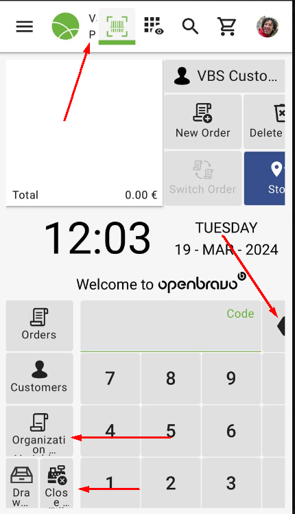 3. Trigger an action that makes the keyboard to be shown (for example, move to Scan menu)