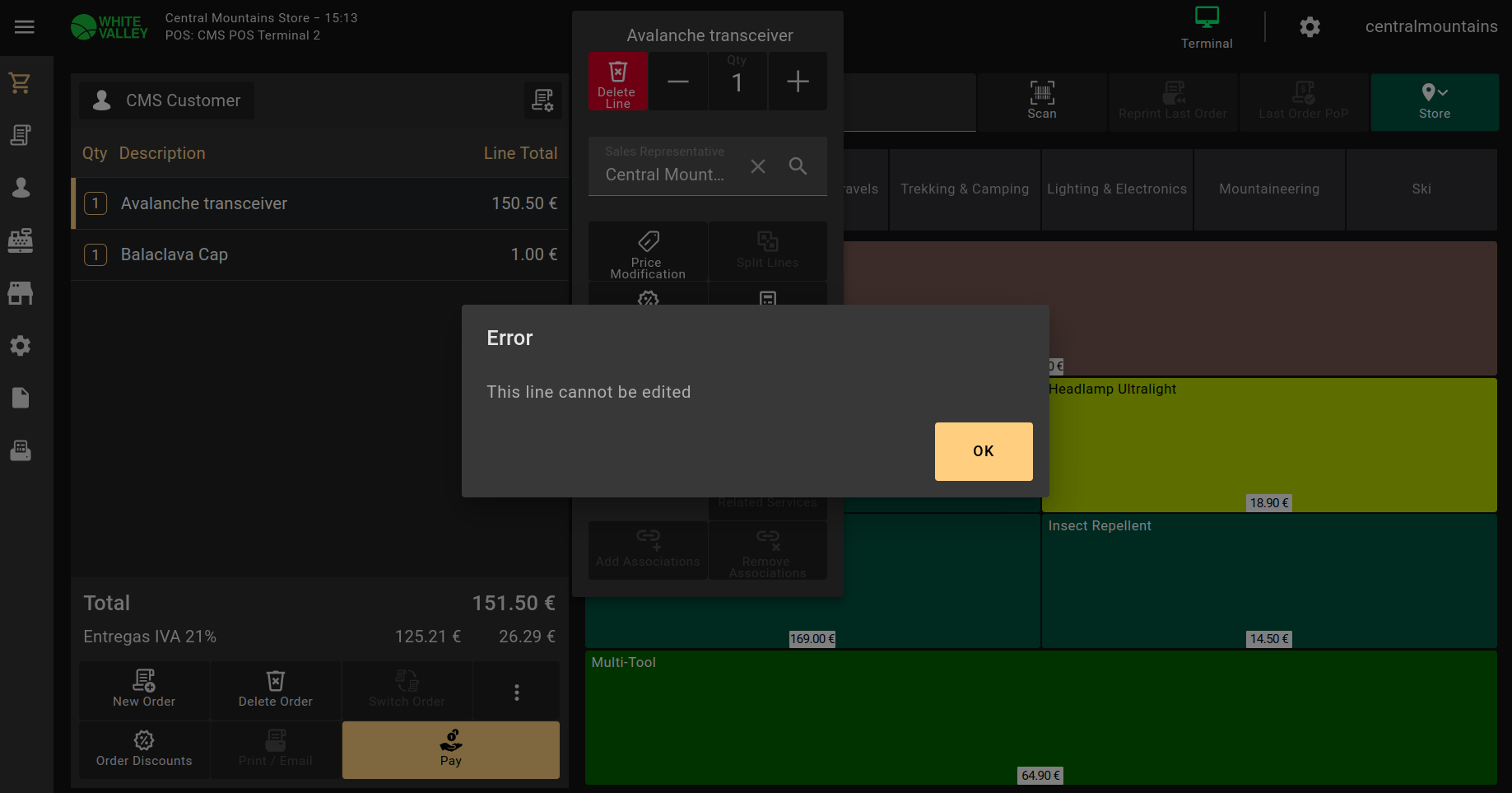 | Steps To Reproduce | Log in ERP using below login credentials 'Username': Openbravo 'Password': openbravo Change the role to Group -Admin-The White Valley Group 1. Navigate to “Preference” window 2. Create a new record a. Select property: Web POS action Change price b. Set 'Value' to 'Y' c. Set 'Visible at User' to Vall Blanca Store User d. Save the record 3. Now, navigate to “Product” window 4. Find and edit the product: 'Avalanche transceiver' 5. In section 'POS Properties' unmark 'Editable Price' 6. Save the record Login to POS terminal, go to the login URL: http://{server}/{context}/web/pos/?terminal=VBS-2 [^] Enter login credentials: 'Username': vallblanca 'Password': openbravo Click "LOG IN" button. 1. Click Browse button in the top panel in case it is not shown by default 2. Click Categories panel: 'Best sellers' 3. Select 'Avalanche transceiver' to add it to current receipt 4. In ticket panel, click the 'Avalanche transceiver' line 5. In the overlay that has been shown, click "Price Modification" button. Set "1" as new Price and click OK button. The error will be thrown, but DEFECT: Realise it is possible to access to that point, but that is not user friendly. | |||||||||||
