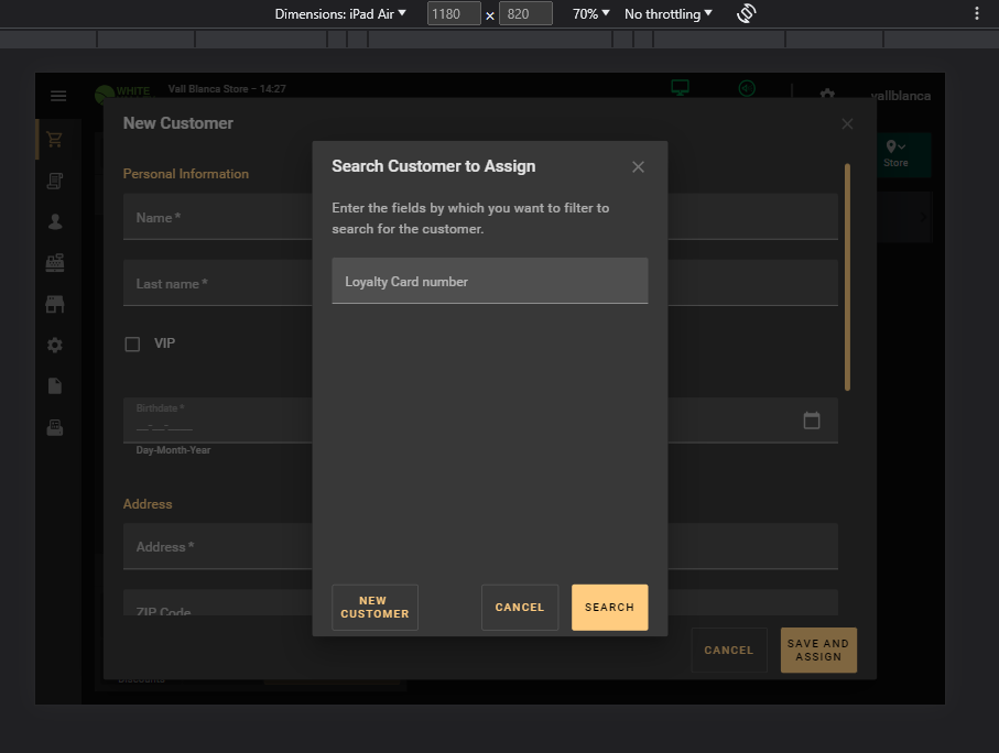 | Steps To Reproduce | 1. Using a computer in iPad compatibility mode, tap in the Anonymous Customer 2. The Search Customer window is shown 3. Click the New Customer button 4. The New Customer window is shown 5. Rotate the device. Notice the Search Customer window showing on top. | |||||||||||