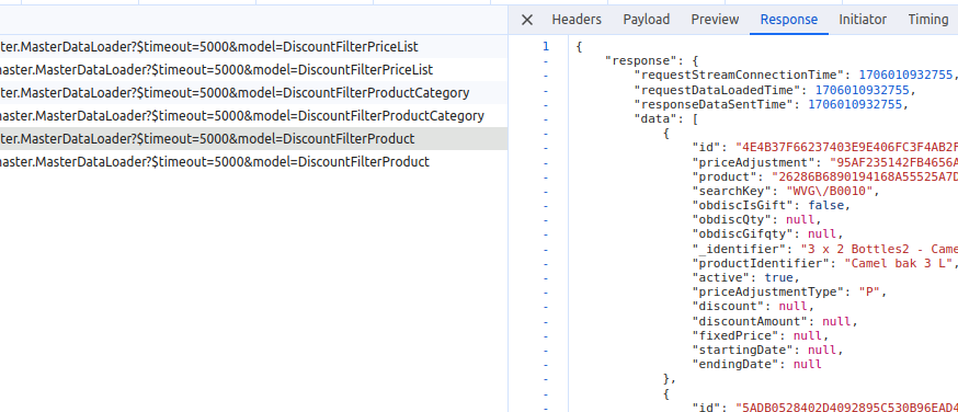 | Steps To Reproduce | POS: - do login BO: - go to Discounts and Promotions window - record: 3 x 2 Bottles - update name value from "3 x 2 Bottles" to "3 x 2 Bottles2" POS: - open dev tools -> network tab - refresh data -> the response of the masterdata request DiscountFilterProduct contains all m_offer_product info | |||||||||||