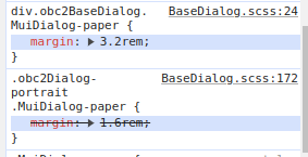 DescriptionThe margin between the dialog and the end of the screen is not correctly set in portrait mode. The selector defined in BaseDialog.scss: 'div.obc2BaseDialog.MuiDialog-paper' is applied instead of '.obc2Dialog-portrait.MuiDialog-paper' as it has more specificity.