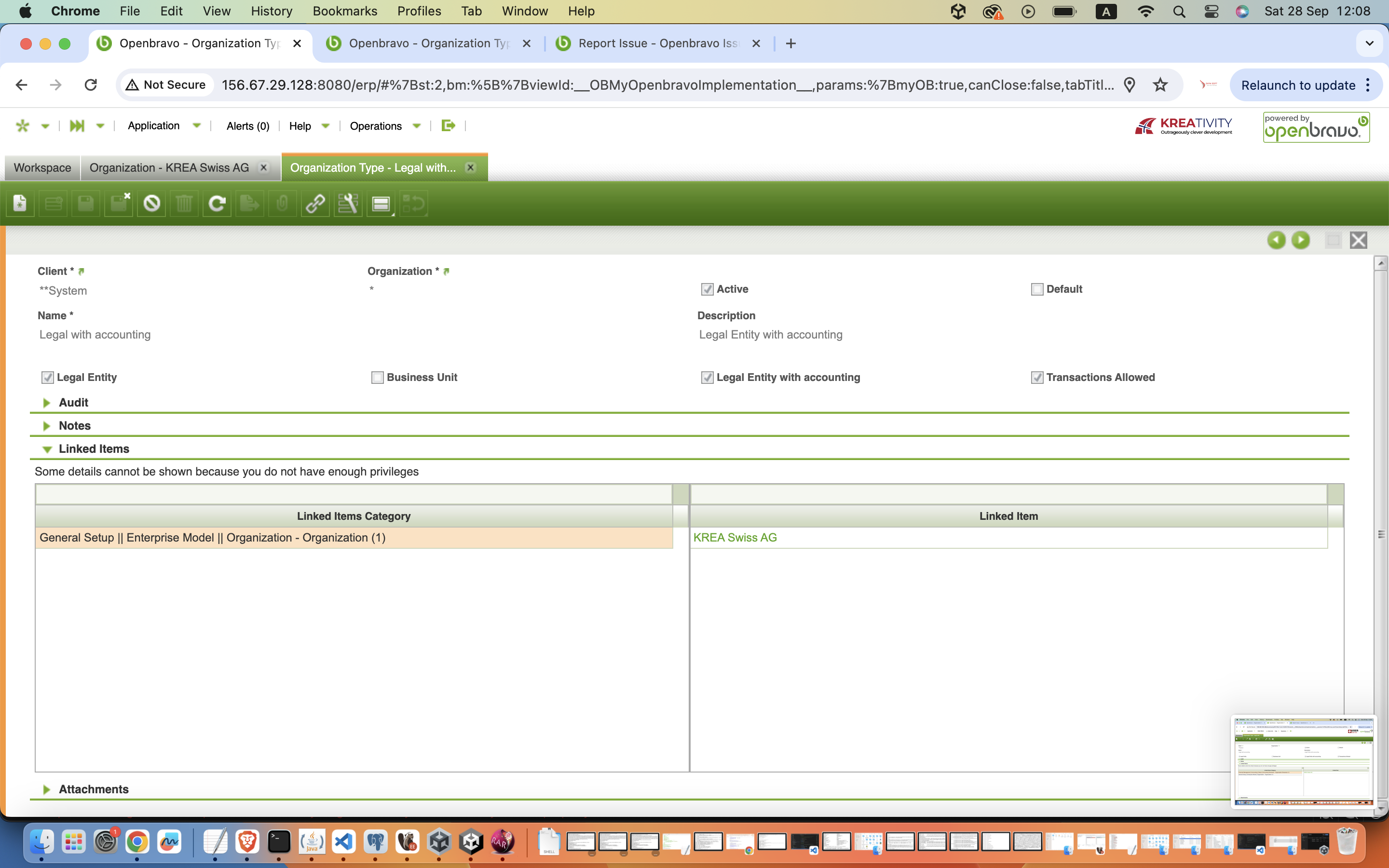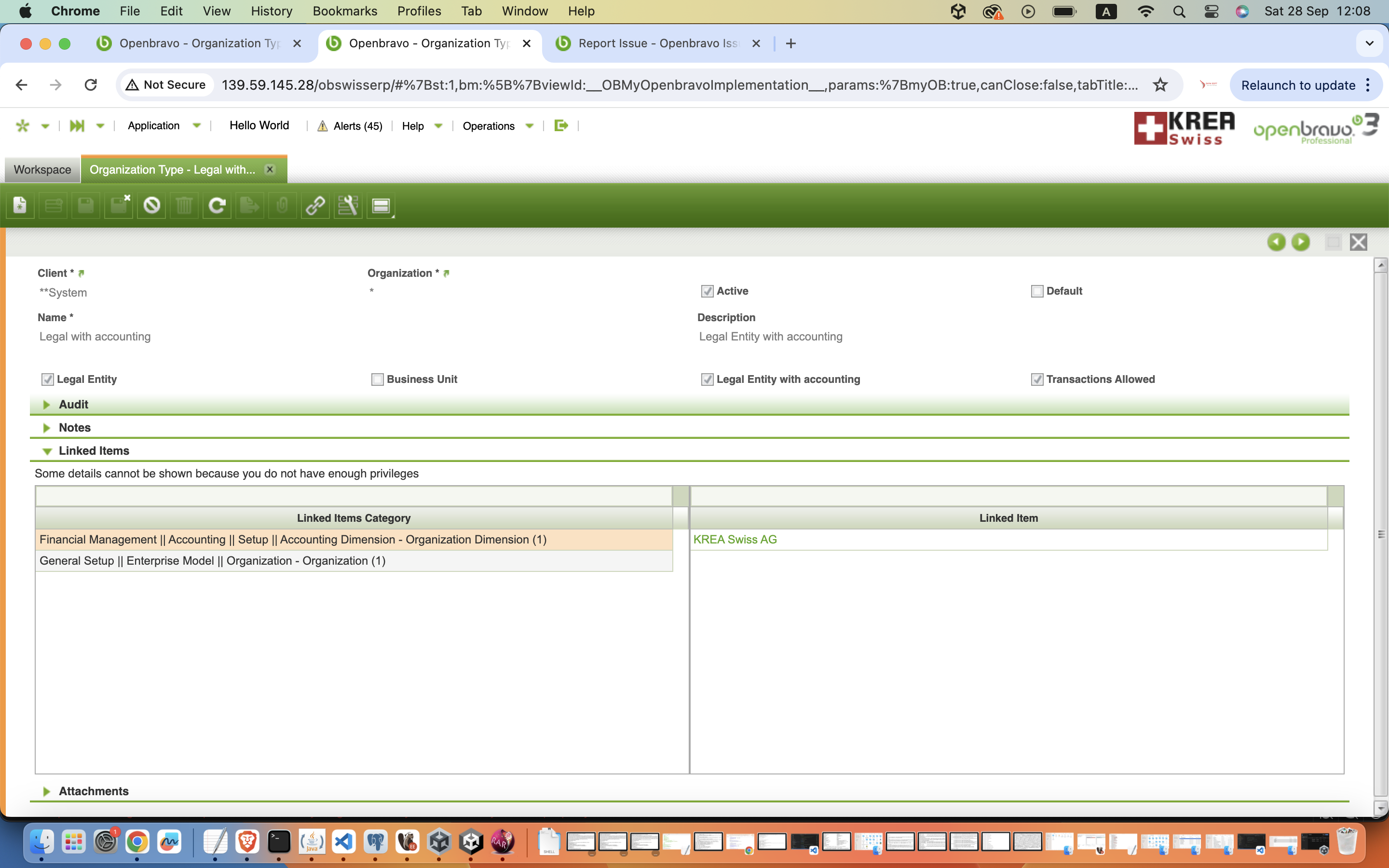 Visit Organisation Type > Legal with accounting > Linked Items.