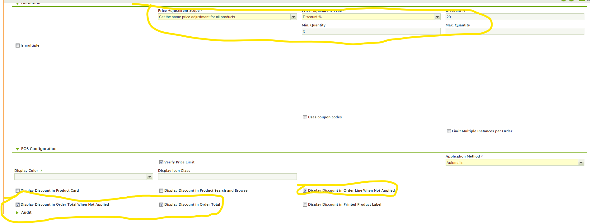 DescriptionWhen the ‘display discount in order line when not apply’ field is ticked in the BO, the ‘lack’ of promotion does not appear on the ticket line on the POS, unlike the ‘display discount in order total when not apply’ field, which is correctly applied on the POS
