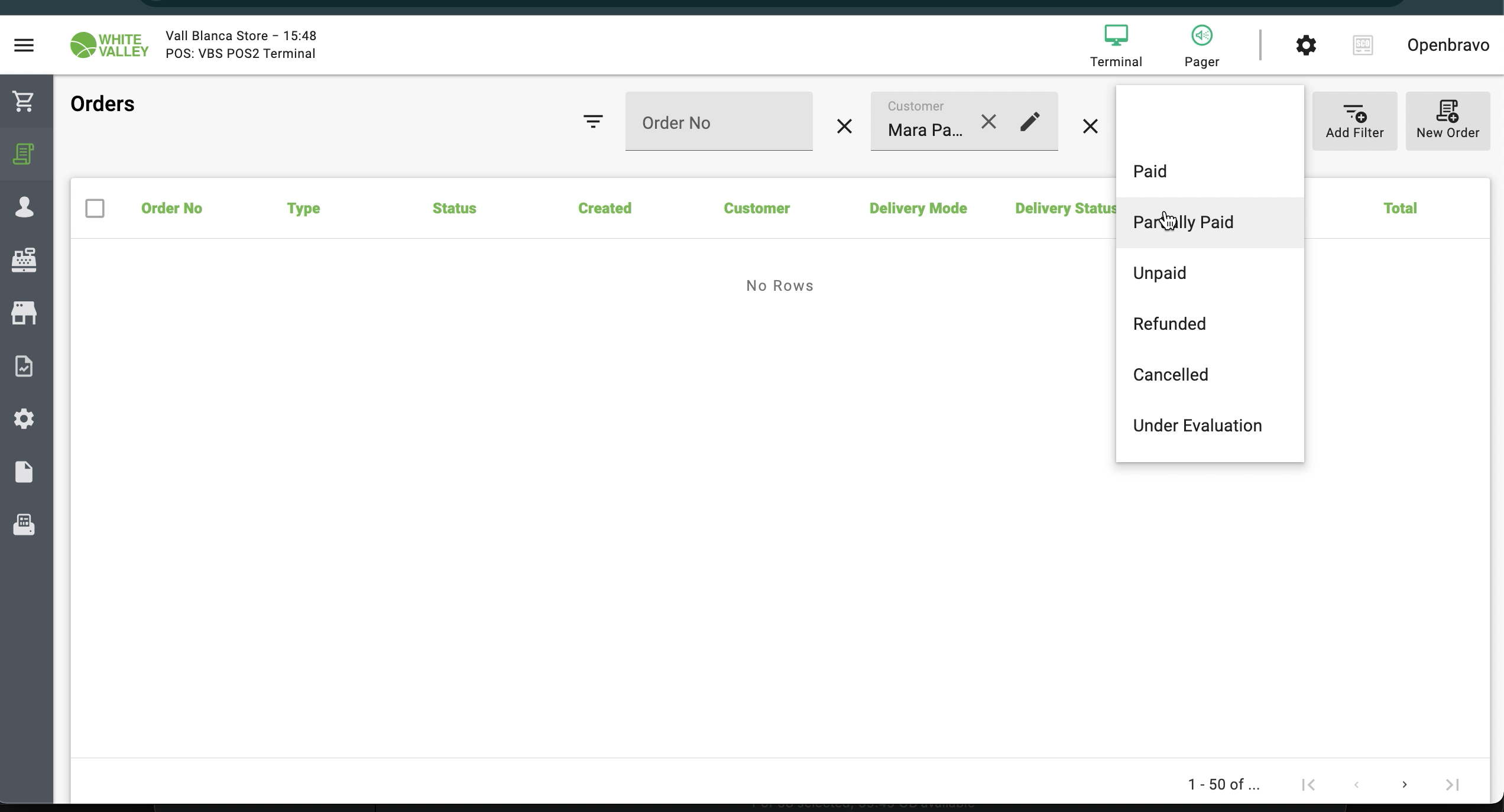 | Proposed Solution | 1.In POS, select a customer and press view info 2. click on orders and add filter status 3. select unpaid and unpaid orders listed 4. select partially paid and partially paid orders listed Expected: Multi selection enabled and We should be able to select BOTH states at the same time to access the entirety of the client's debts. | |||||||||||