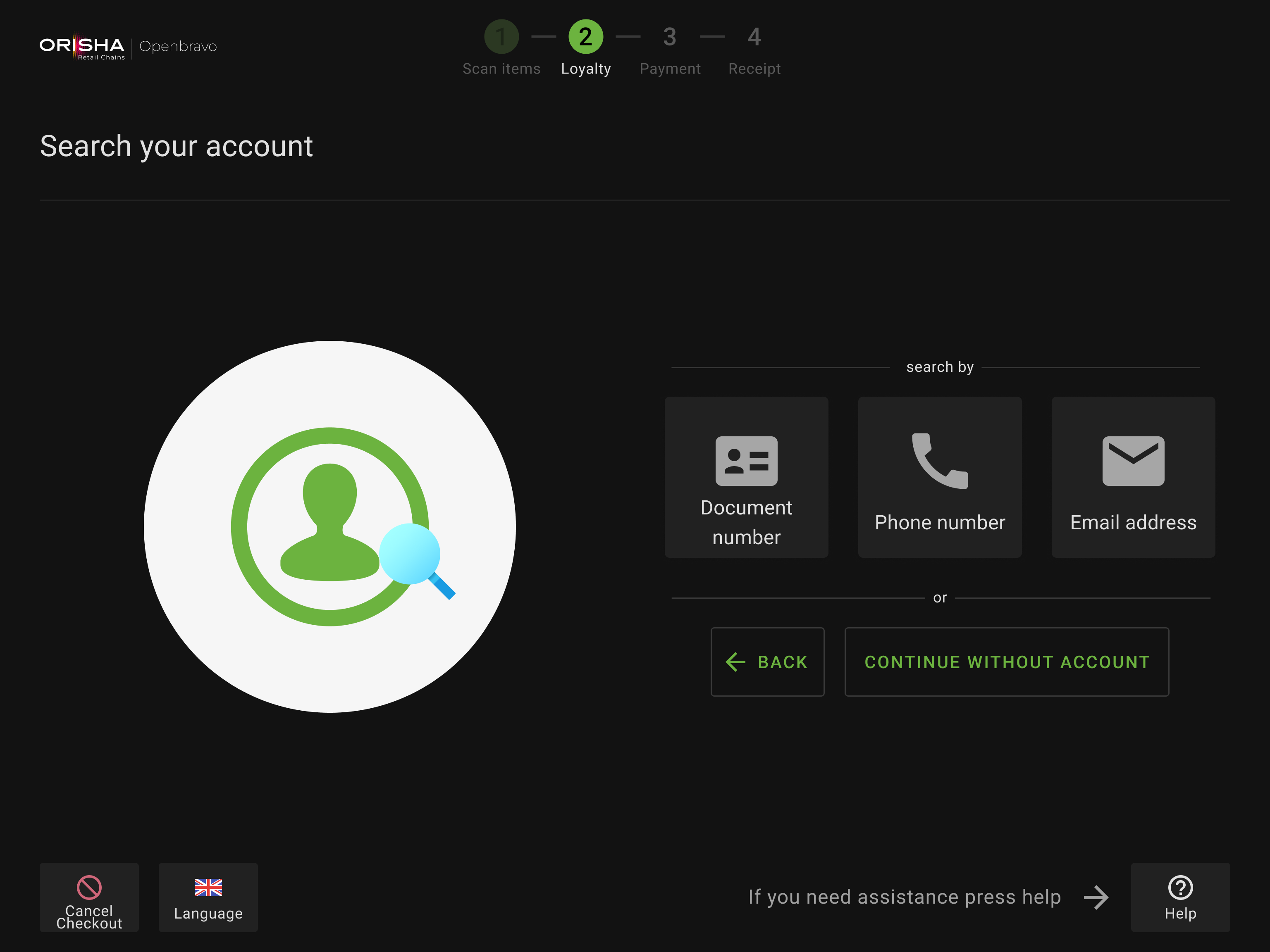 2-Once in SCO, click "START" button. Then, at the top right of the screen, click "CUSTOMER IDENTIFICATION" button. DEFECT: Realise the images from inside the buttons are not visible. (There are other ocurrencies of the same issue in other flows, check attached images as example)