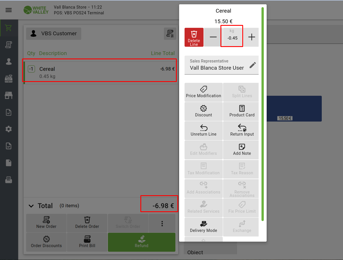 However, for non-unit products with decimal quantities, if the quantity falls below 0, the product remains in the order instead of being removed.