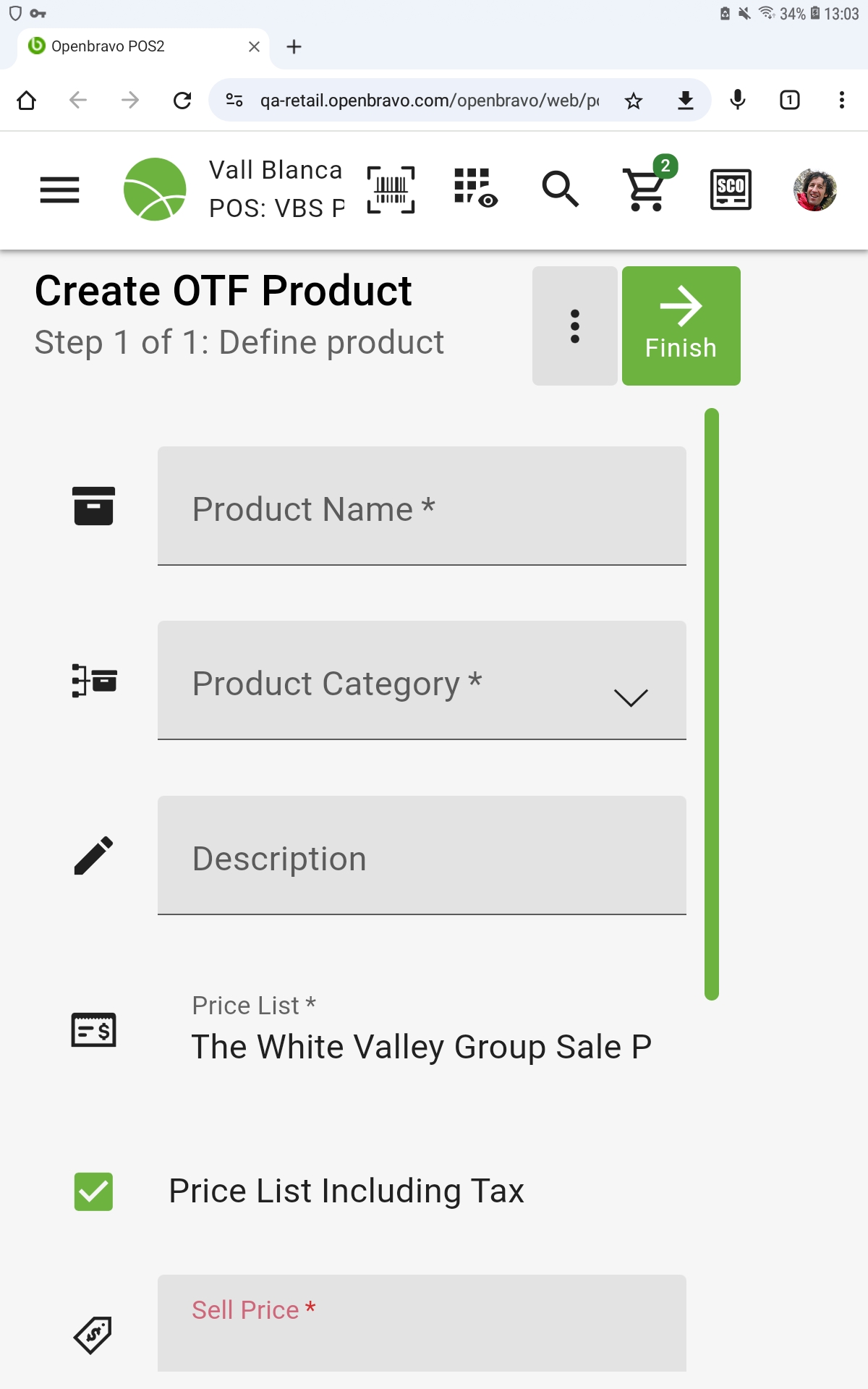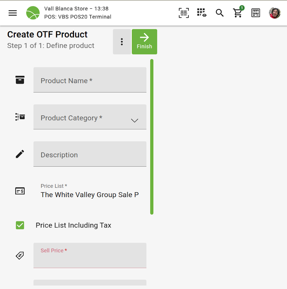 | Steps To Reproduce | 1) Log in to back office 2) Go to Channel Touchpoint Type and open 'POS2SD VBS POS2 Terminal Type' 3) Set the 'Product OTF Creation' field to 'Allow new product and from existing product', and save the record 4) Log in to POS 5) Push 3-vertical-dots button below the total of the order 6) Select 'Create OTF Product' 7) If you are in landscape mode, change to portrait mode | |||||||||||